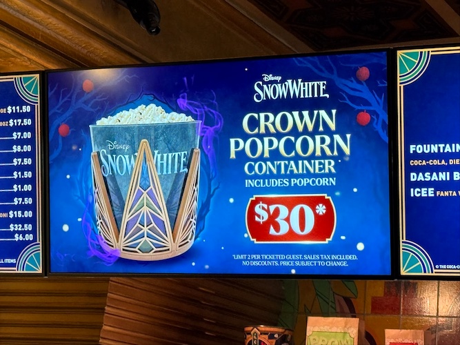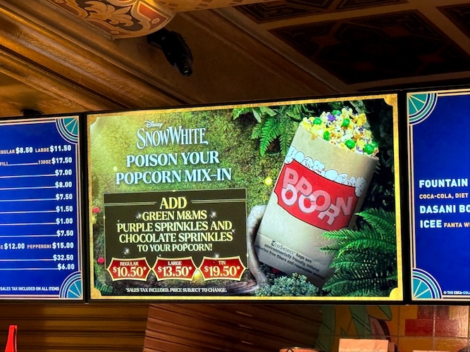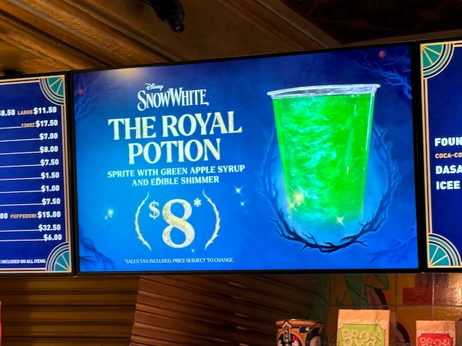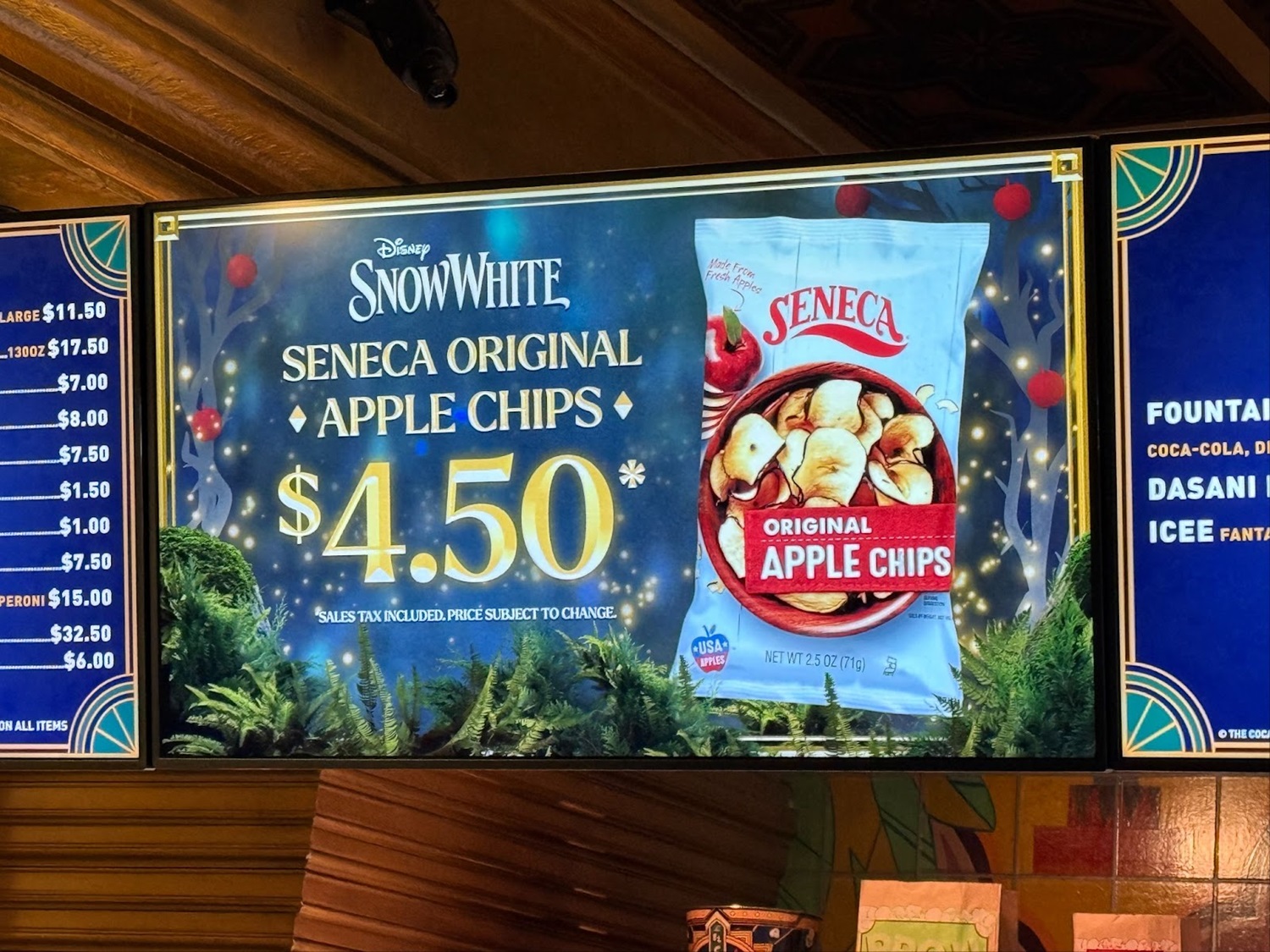 Inside the theater, the specialty options at the concession stand run the gamut from collectible popcorn buckets to specialty snacks and drinks (mostly apple-inspired, of course).