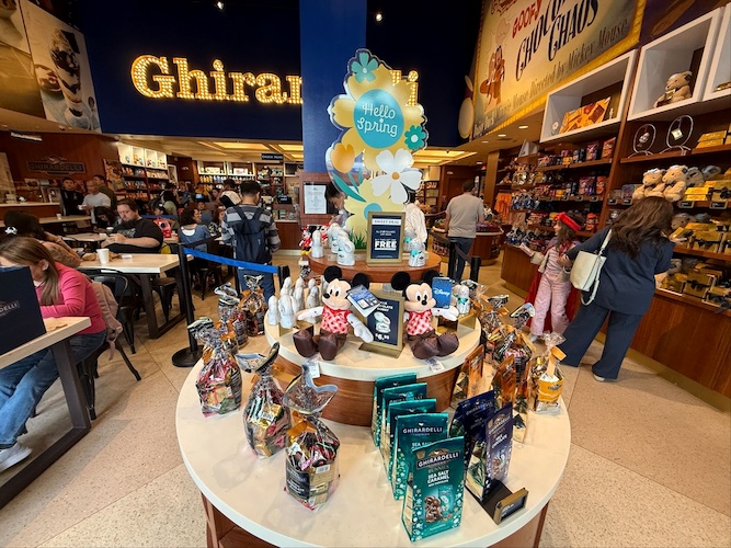 Next door at the Ghirardelli Soda Fountain & Chocolate Shop, guests can find window displays, merchandise, and a special Kendra Scott collection of jewelry celebrating the film.