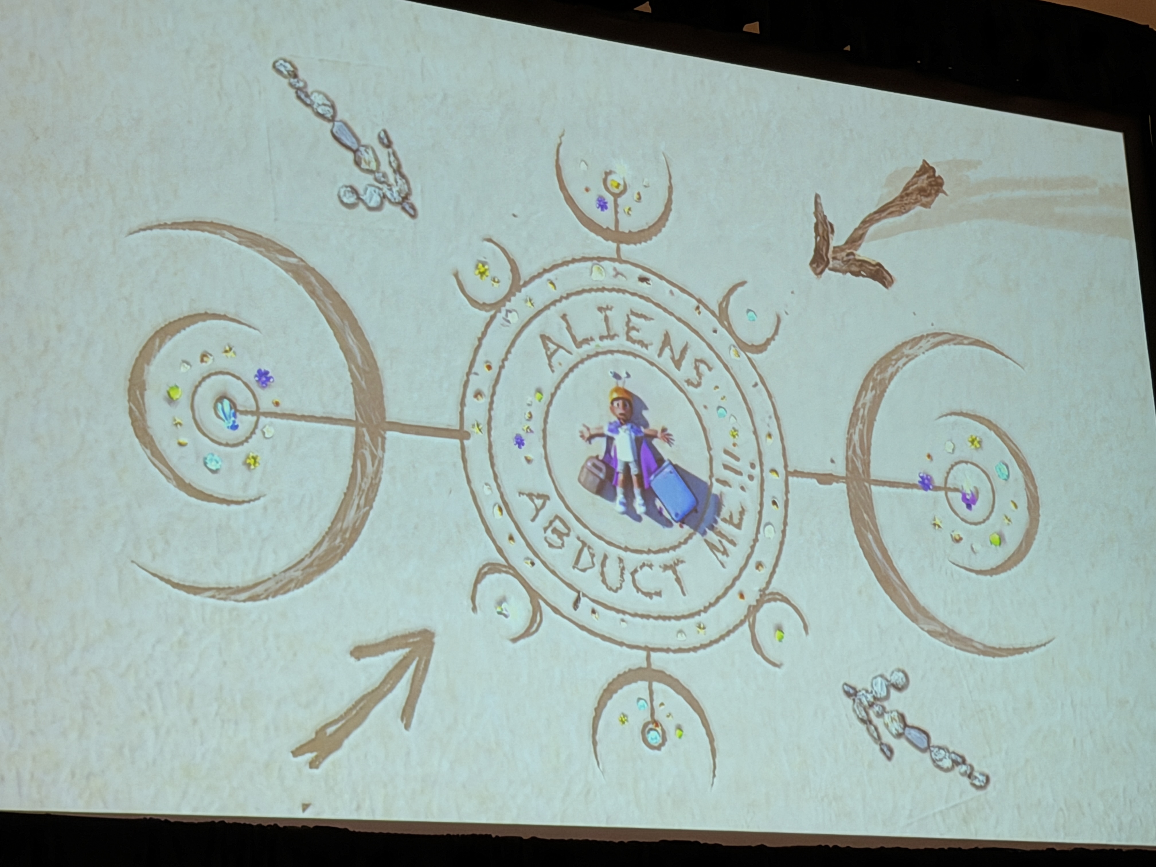 Jones also previewed early versions of Elio’s space message in the sand, which evolved from rough geometric patterns into a readable alien signal visible from above.