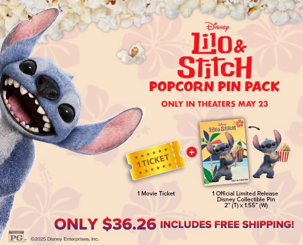 - For only $36.26, which includes free shipping and handling, you can purchase a movie ticket to watch Lilo & Stitch in theaters, along with an exclusive Disney collectible pin.