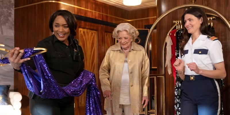 With that garbage out of the way, Angela Bassett (I know her character name is Athena, but it’s Angela Bassett) ends up on the ship being trapped in a housekeeping closet that is, apparently, unable to be opened from the inside. Smart. For those familiar with 9-1-1, she previously had an apocalyptic cruise experience, so being stuck onboard another floating trauma trap is not ideal. However, she is under the care of a staff and Captain who wants to make sure she feels safe and comfortable.