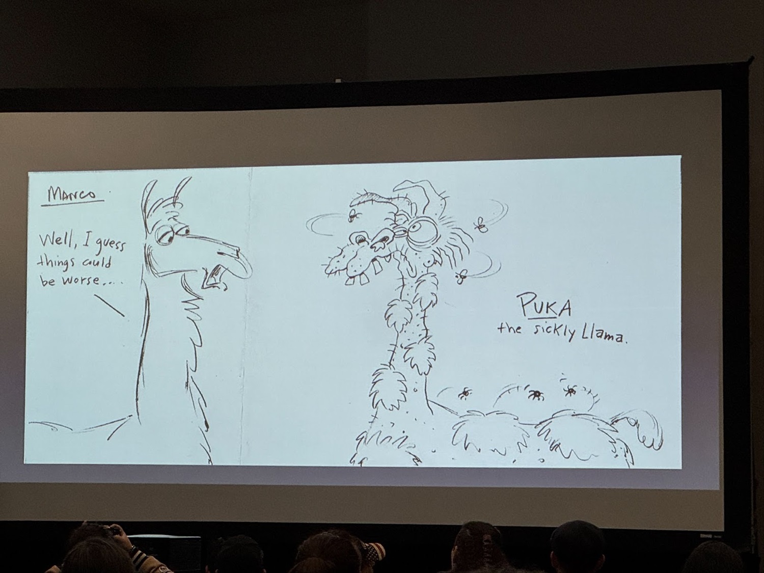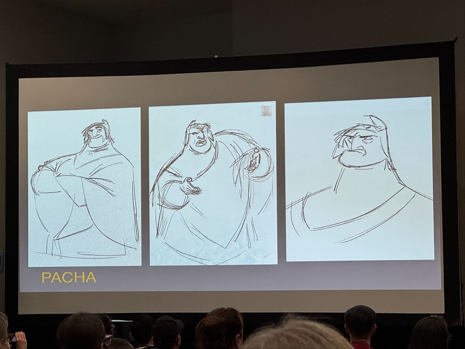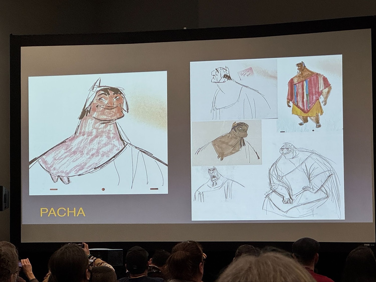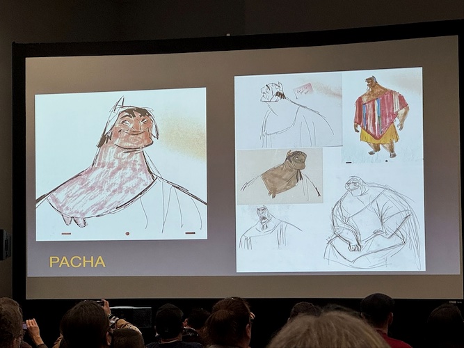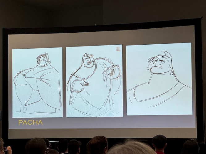 They started off the presentation by sharing early and later character design concept art sketches of Kuzco and Pacha.