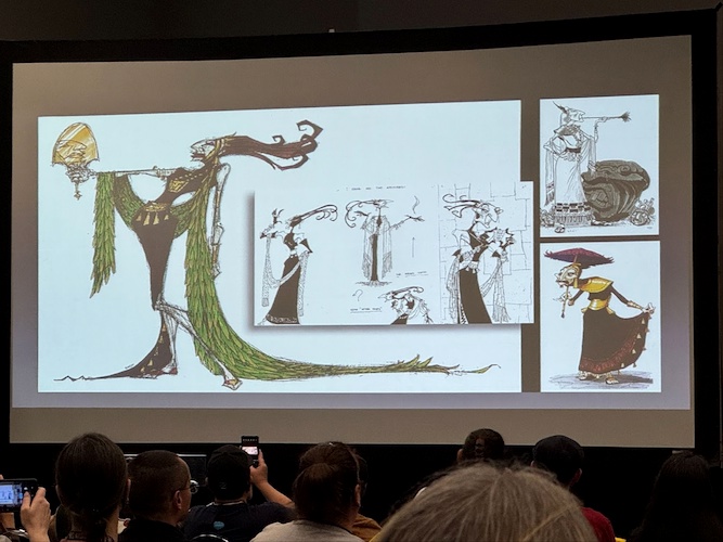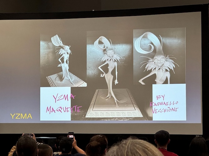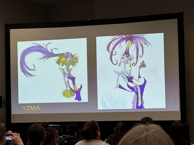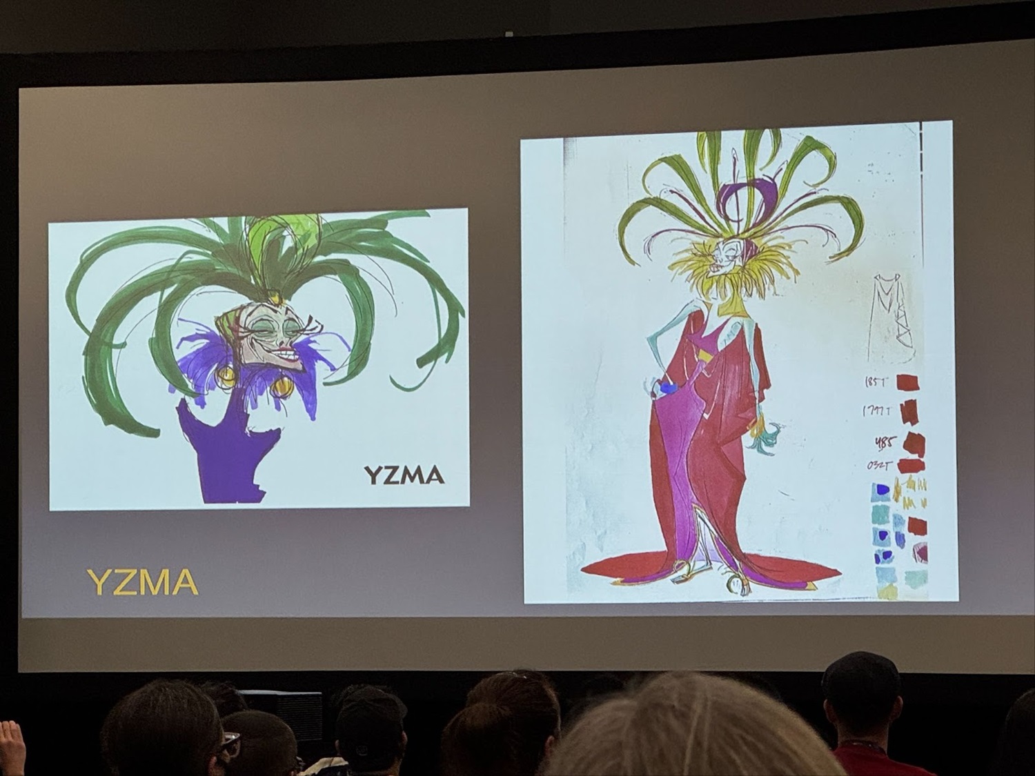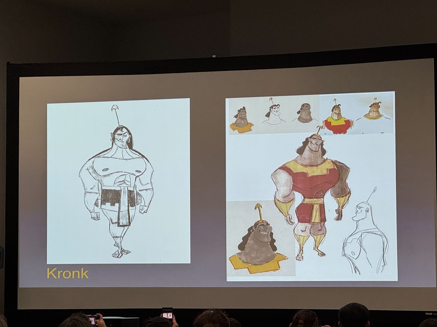 Next they showed concept drawings and a maquette of Yzma, along with concepts of Kronk. We learned that the character of Yzma was inspired by Peruvian singer Yma Sumac, while Disney originally wanted actor Brad Garrett to voice Kronk, though the creative team was insistent on Patrick Warburton being perfect for the role.