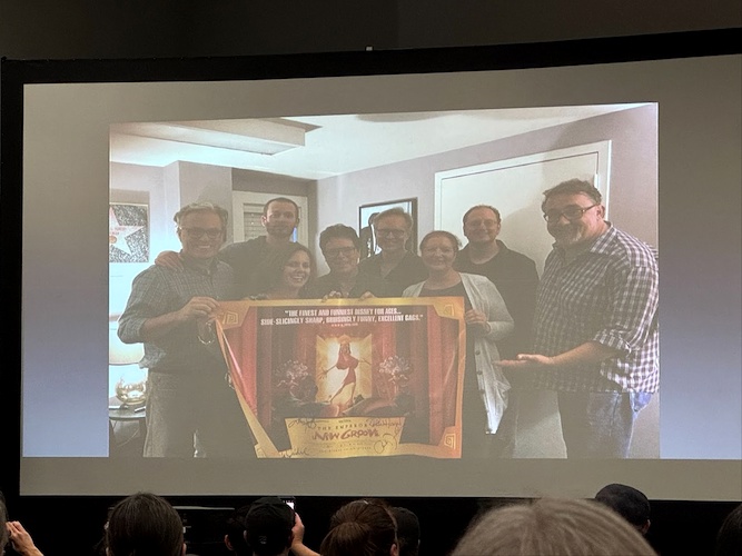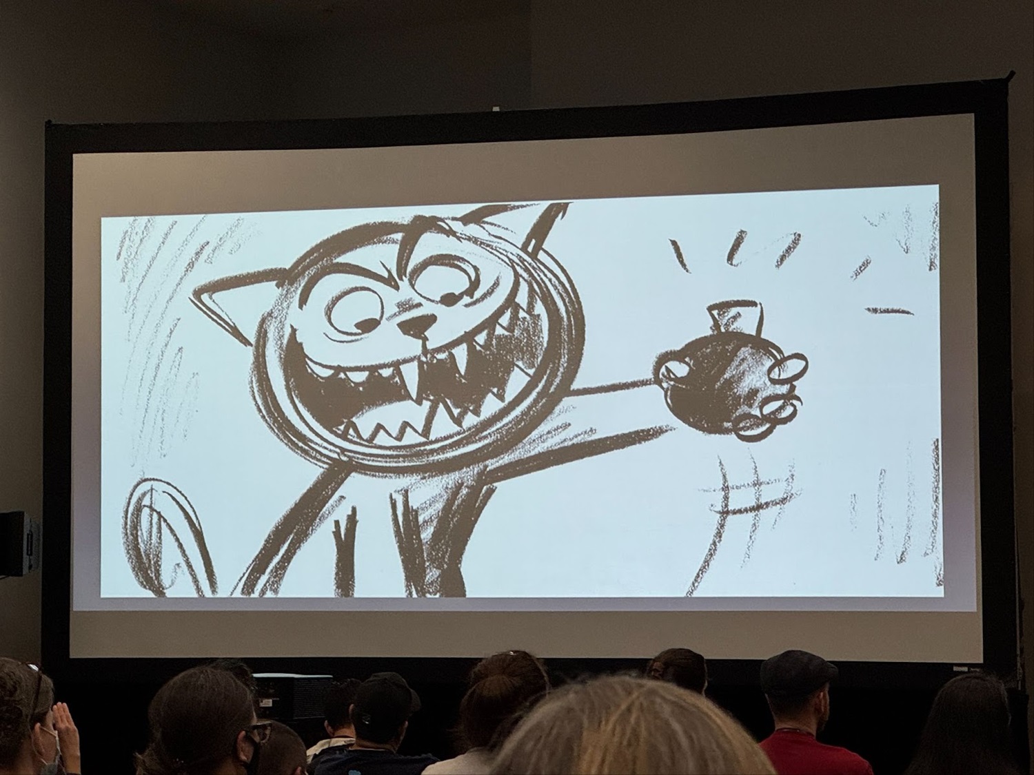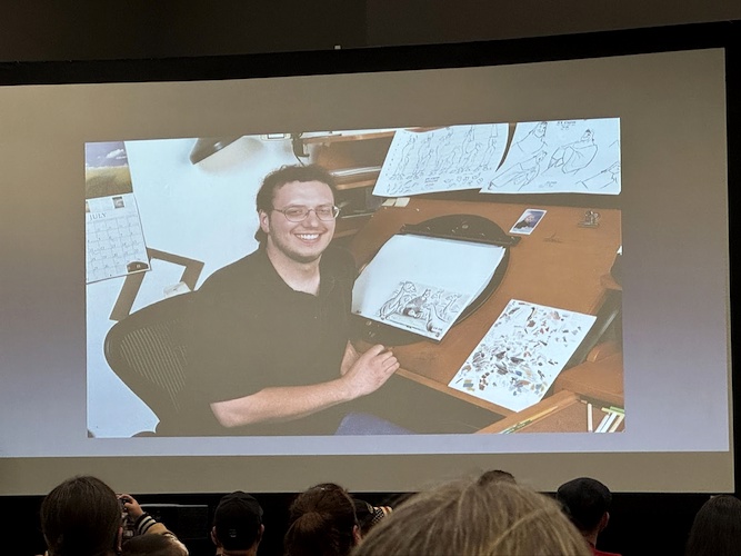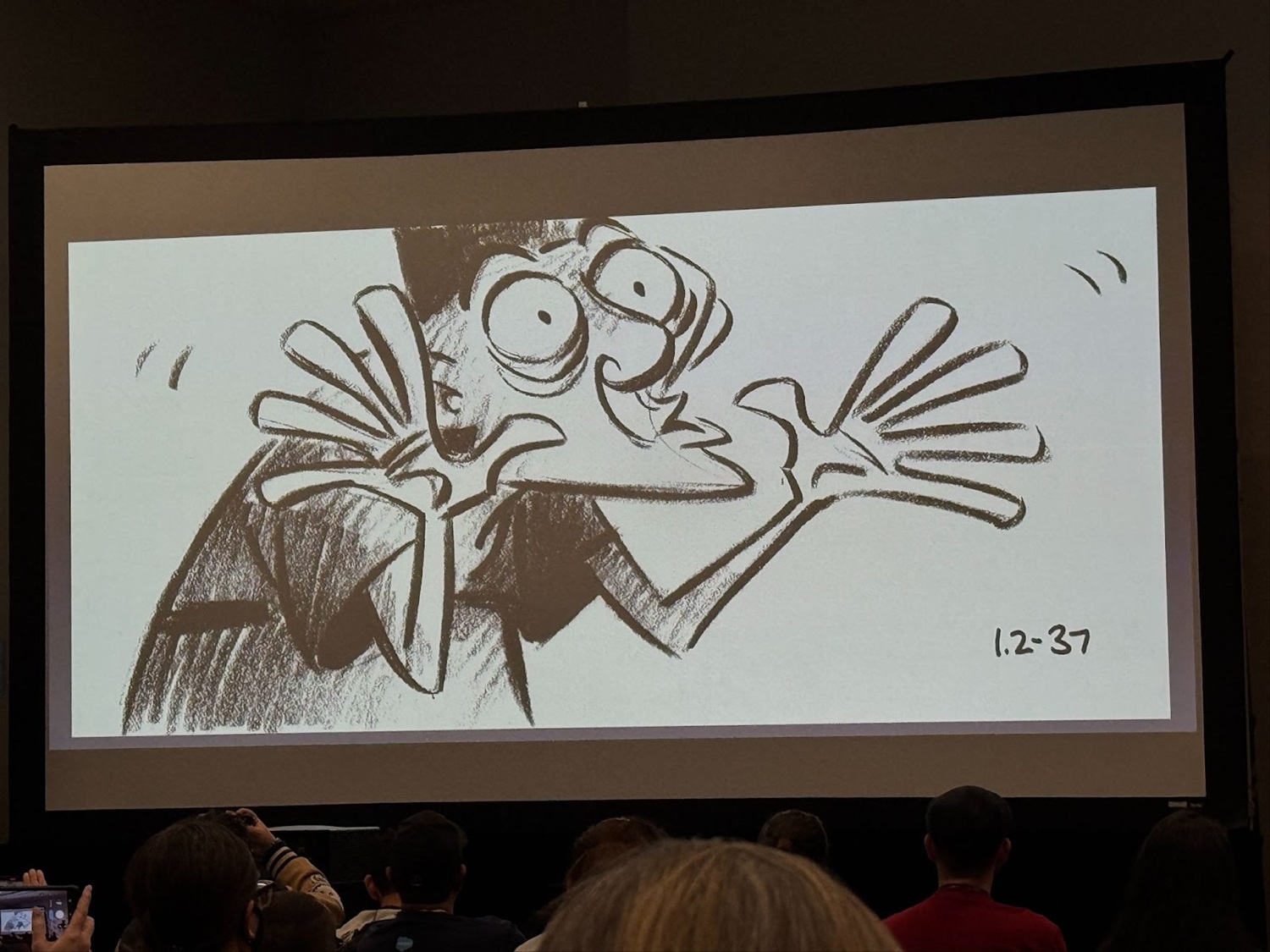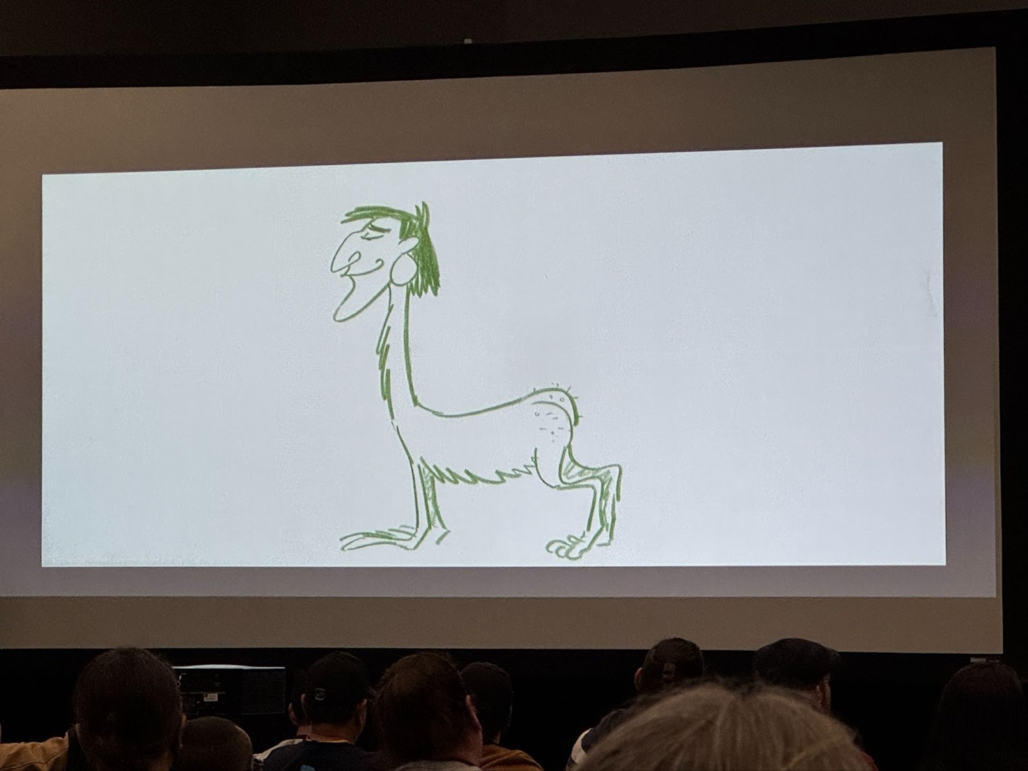 The panelists for this 25th anniversary discussion of The Emperor’s New Groove were as follows: story artist Jeff Ranjo (Moana), story supervisor Steve Anderson (Meet the Robinsons), character designer Joe Moshier (Spider-Man: Across the Spider-Verse), assistant production manager Tracey Miller-Zarneke (Chicken Little), and screenwriter Dave Reynolds (Finding Nemo).