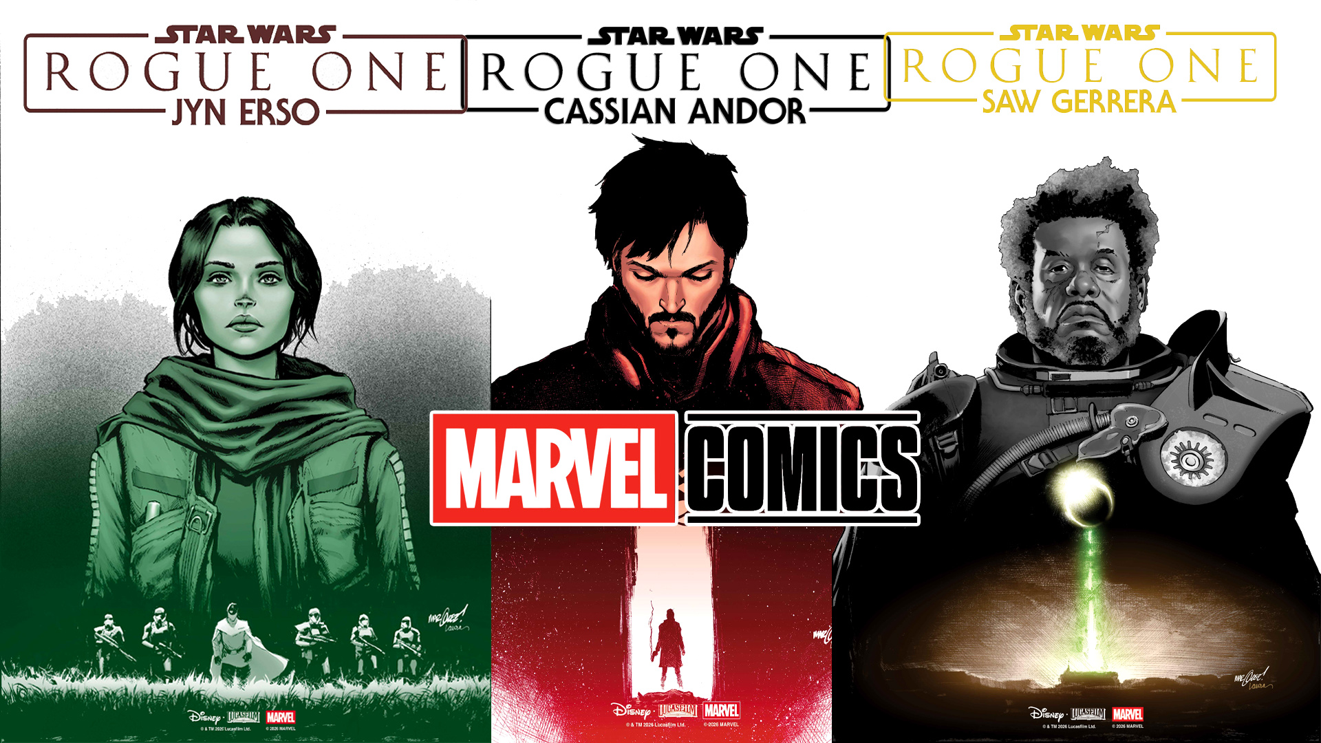 - The second release will be Star Wars: Rogue One - Jyn Erso on June 3. This issue will be written by Ethan Sacks (Star Wars: Galaxy's Edge - Echoes of the Empire) and illustrated by Ramon Rosanas (Star Wars: Han Solo - Hunt for the Falcon) with a cover by David Marquez (The Uncanny X-Men).