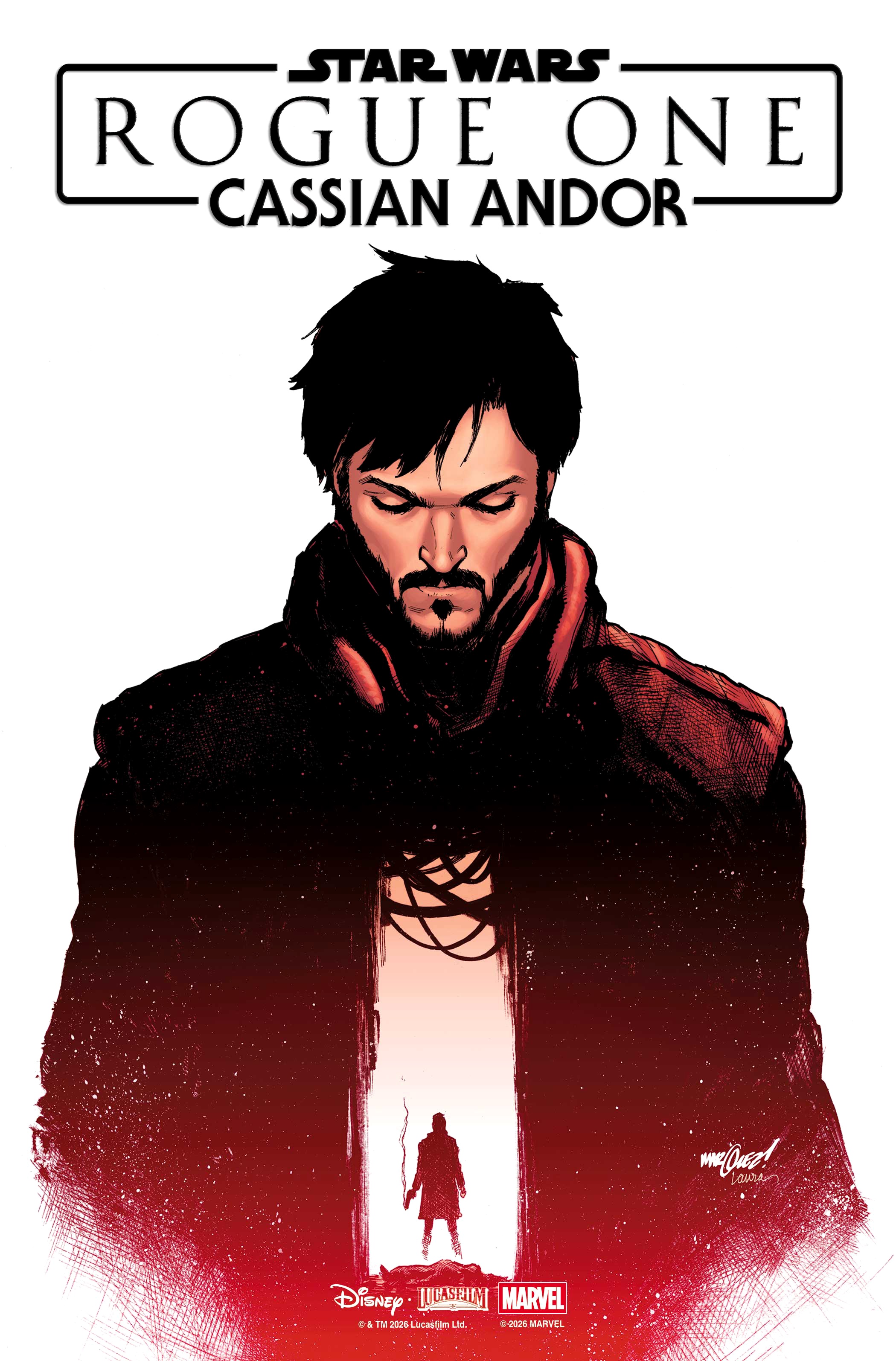 - First up on Wednesday, May 6 will be Star Wars: Rogue One - Cassian Andor, written by Benjamin Percy (Star Wars: Shadow of Maul) with art by Luke Ross (Star Wars). The main cover for this issue is created by David Marquez (The Punisher), while the variant cover is by Josemaria Casanovas (Star Wars: Bounty Hunters). Both are viewable below.
