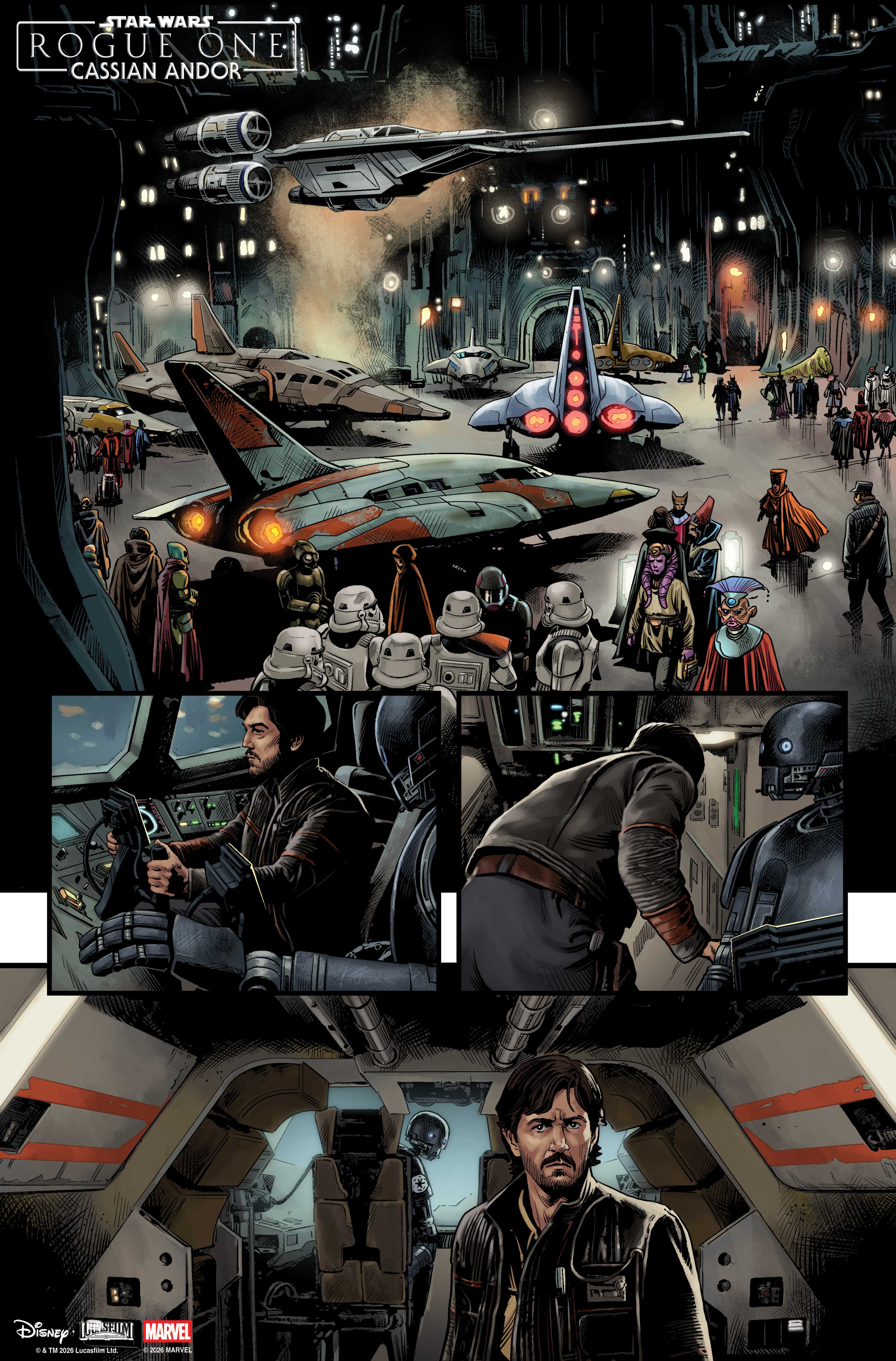 - UPDATE – April 2, 2026: Marvel has shared some additional images from within the pages of Star Wars: Rogue One - Cassian Andor, which you can see below.