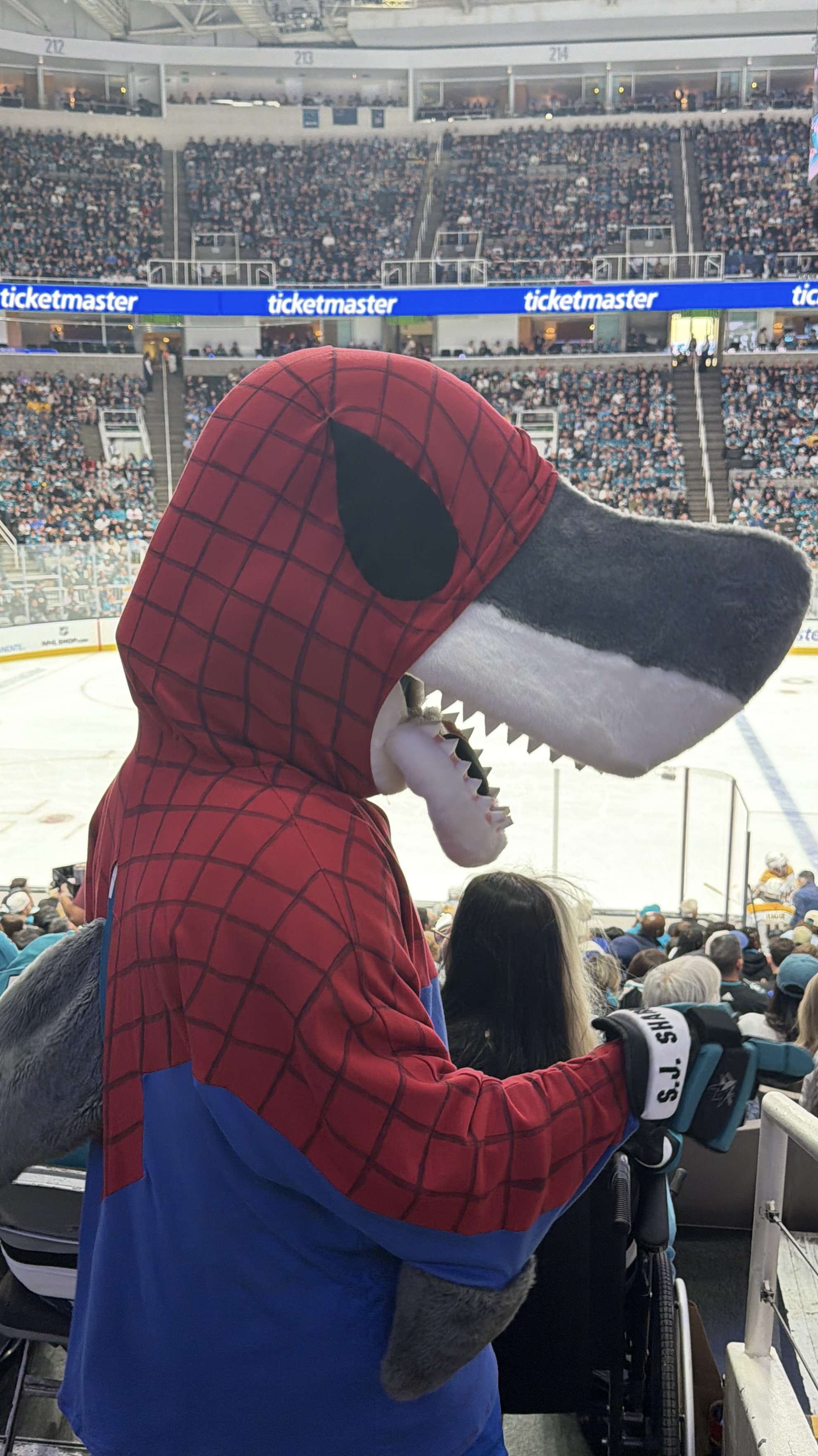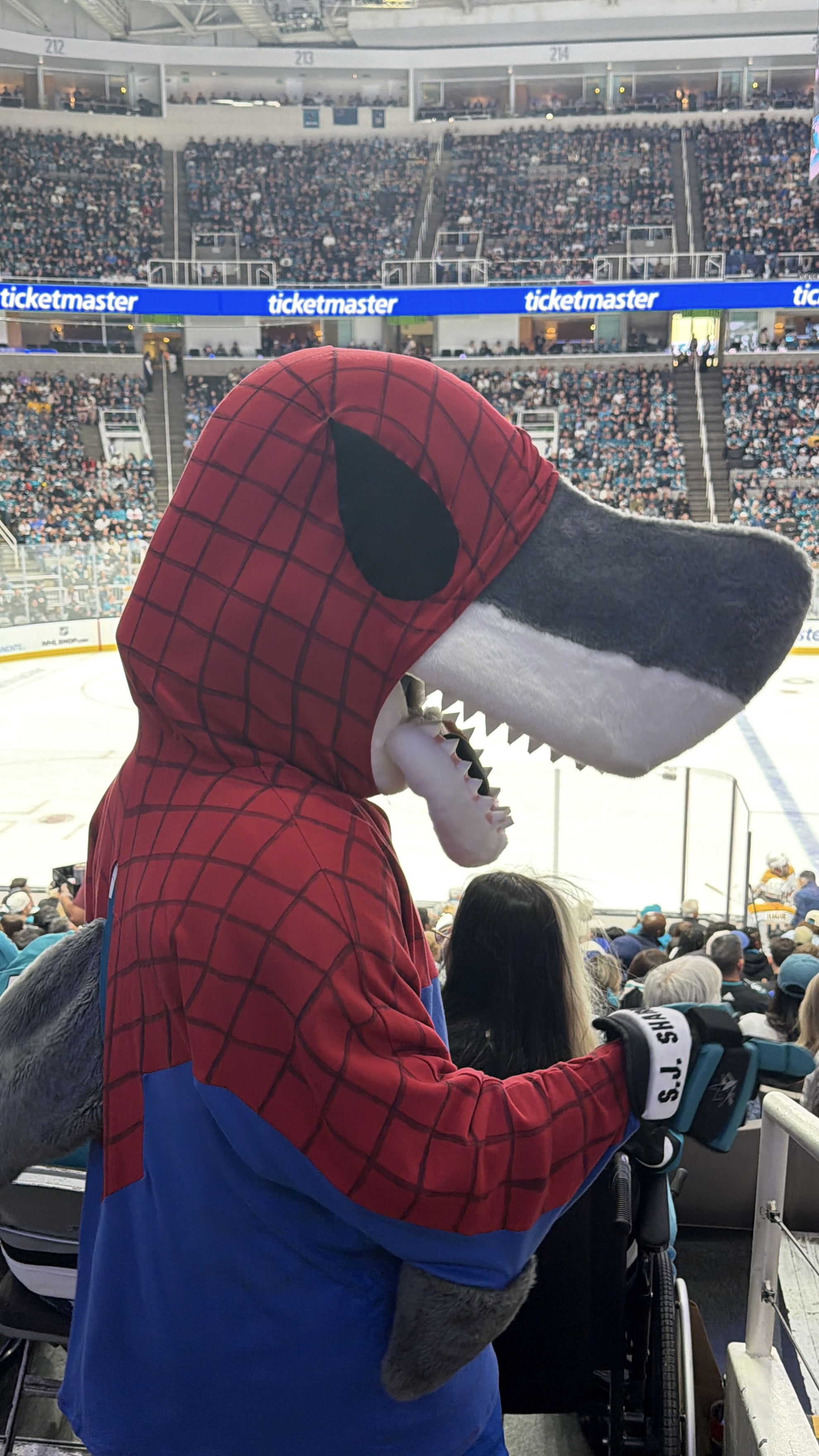 The team's mascot, S.J. Sharkie, even got dressed up in his finest Spider-Man onesie.