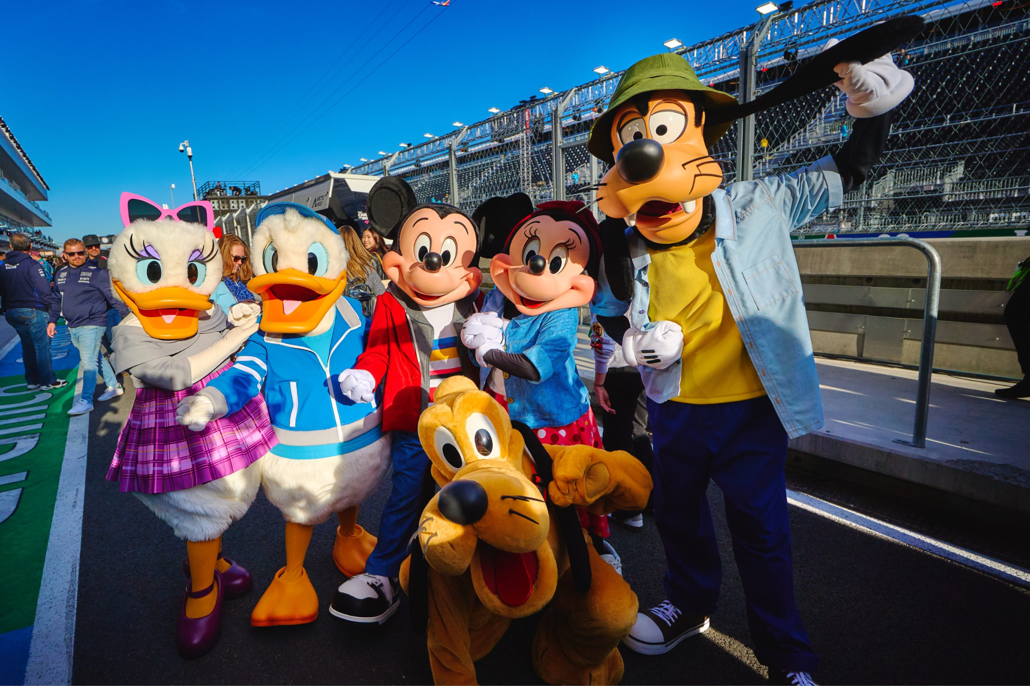 - Elsewhere during the event, Mickey and his friends participated in a pit lane walk, meeting and greeting fans and drivers along the way.