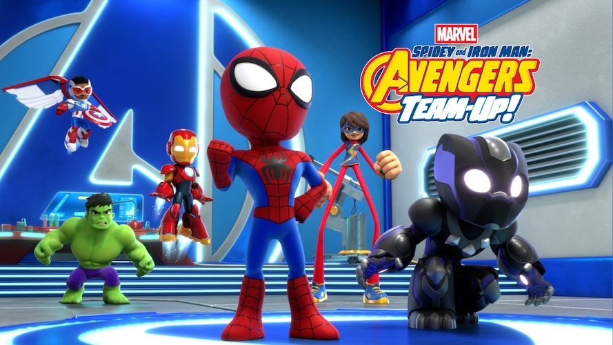 - Both series have inspired a robust product assortment, including books, toys, apparel, and more from Disney Consumer Products. Additionally, tied to the “Team-Up" special, the newly released Hasbro Spidey and Iron Man: Avengers Team-Up! action figure collection is available now exclusively online at Amazon.