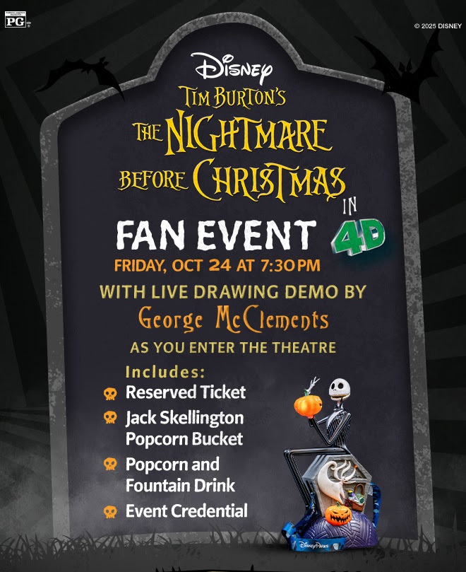 - Tim Burton’s The Nightmare Before Christmas Fan Event creeps into the El Capitan on October 24th in 4D!