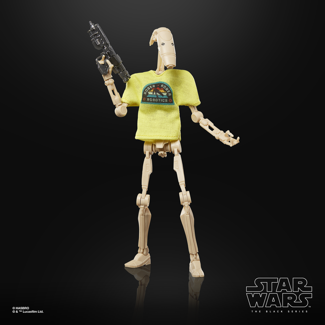 The B1 Battle Droid figure embraces its iconic personality with a cheeky “Roger Roger Robotics” T-shirt, a nod to its memorable line delivery throughout the saga. It also includes a blaster accessory and a “target practice” poster featuring Anakin Skywalker, adding an extra layer of storytelling for display. This version will be available exclusively at Target in Spring 2026.