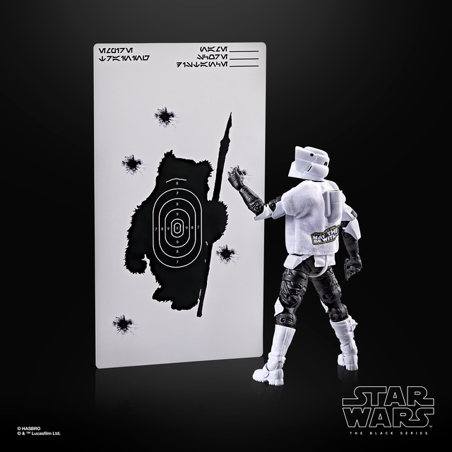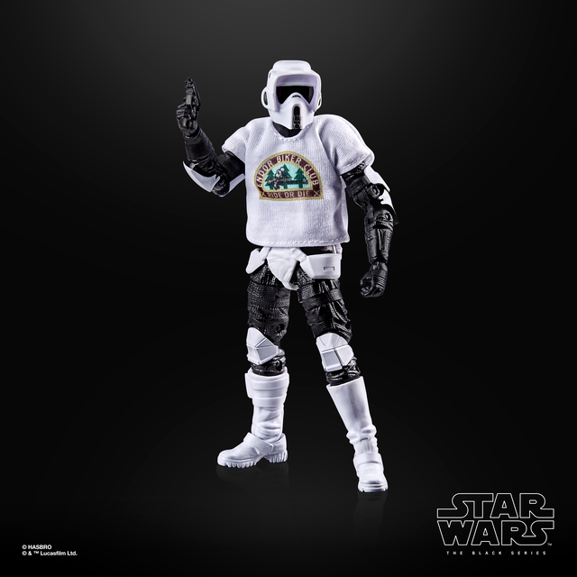 The Scout Trooper gets a laid-back makeover with an “Endor Biker Club” T-shirt, giving a playful wink to its time speeding through forest terrain. The included target poster spotlights Wicket W. Warrick, tying the figure back to the Endor setting fans know and love. Collectors can find this release through select fan channel retailers.