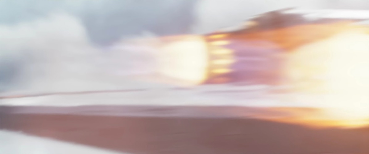 Shot 20: The Razor Crest nose-dives through the atmosphere, as it is fired upon by an unseen craft.