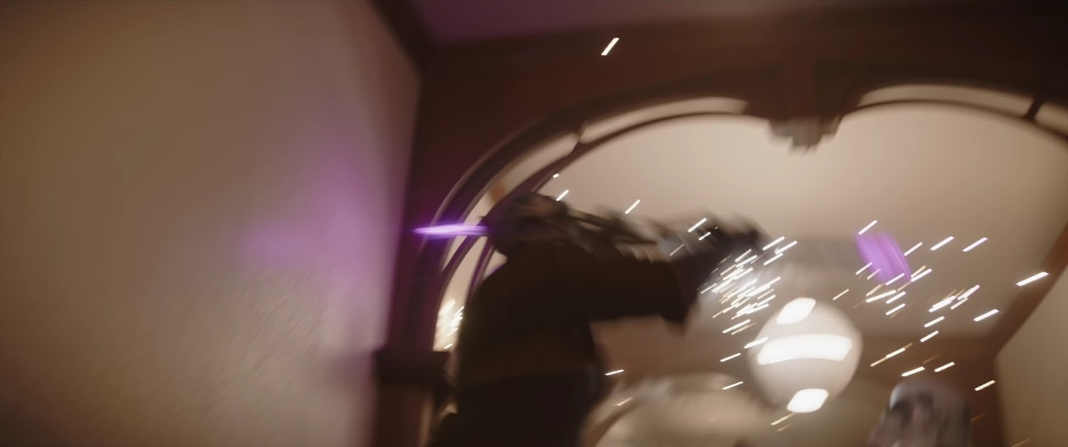Shot 24: Another really exciting shot shows Garazeb “Zeb" Orellios from Star Wars Rebels (and a brief appearance in season 3 of The Mandalorian) taking out some stormtroopers with his bo-rifle in a hallway.