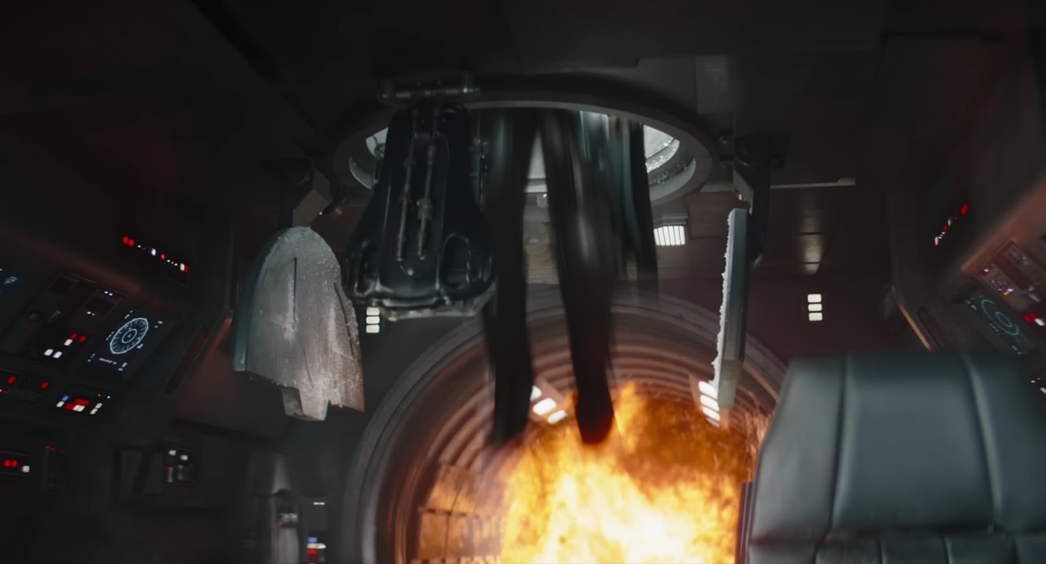 Shot 35: Din, with Grogu on his back, blasts out of the cockpit of an Imperial AT-AT walker. Other parts of this same scene, along with some of the other footage in the trailer, were shown at Star Wars Celebration 2025 in Japan this past April.