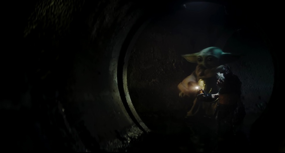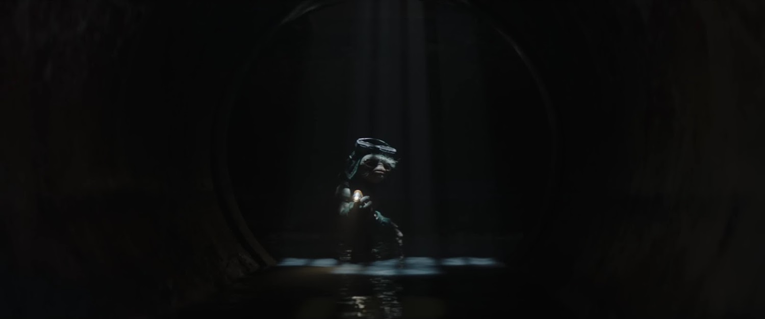 Shot 4: An Anzellan (maybe Babu Frik from Star Wars: Episode IX - The Rise of Skywalker, maybe one of the other unnamed Anzellans from The Mandalorian) leads Grogu through a sewer. The location is unidentified.