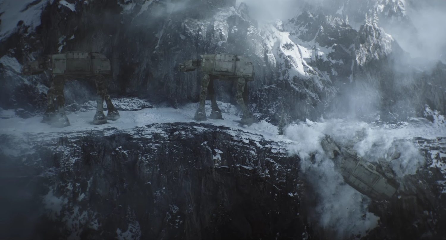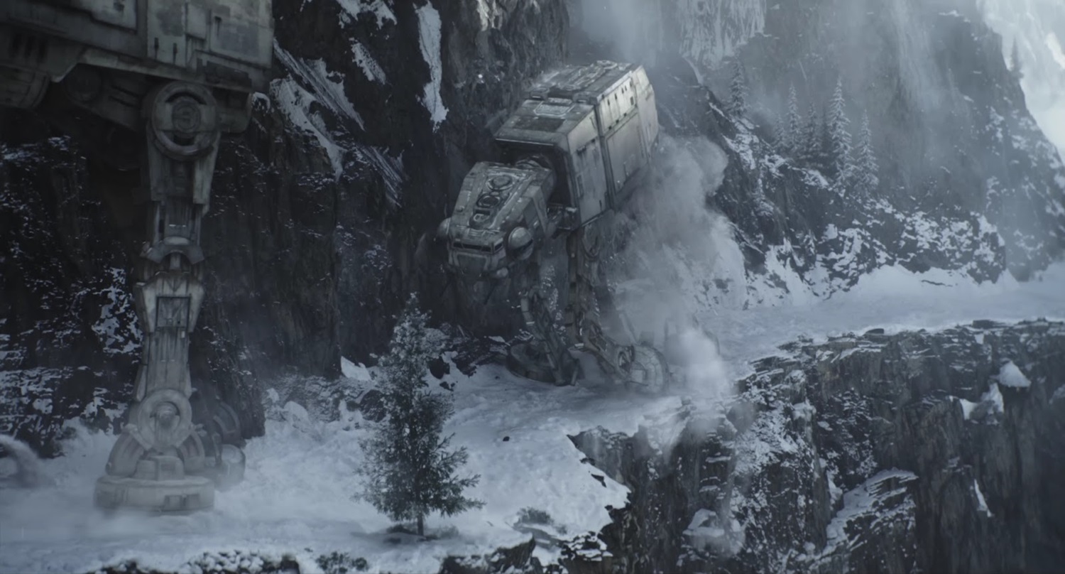 Shot 37: The AT-AT’s legs begin to buckle as it tumbles off the side of the cliff. Another walker is seen marching ahead of it up the mountainside.