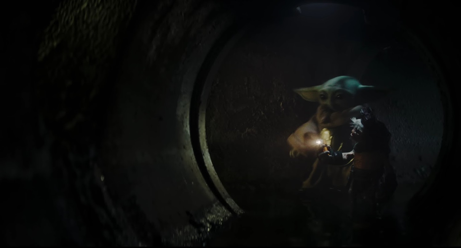Shot 42: Grogu and the Anzellans continue their way down the sewer pipe. I’m assuming the Anzellans are still voiced by Shirley Henderson from the Harry Potter films.