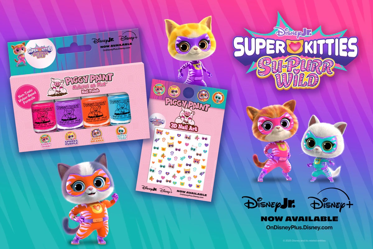 - Piggy Paint has debuted a new set of nail polishes for kids, teaming up with Disney Jr. for shades inspired by the hit animated series, SuperKitties.