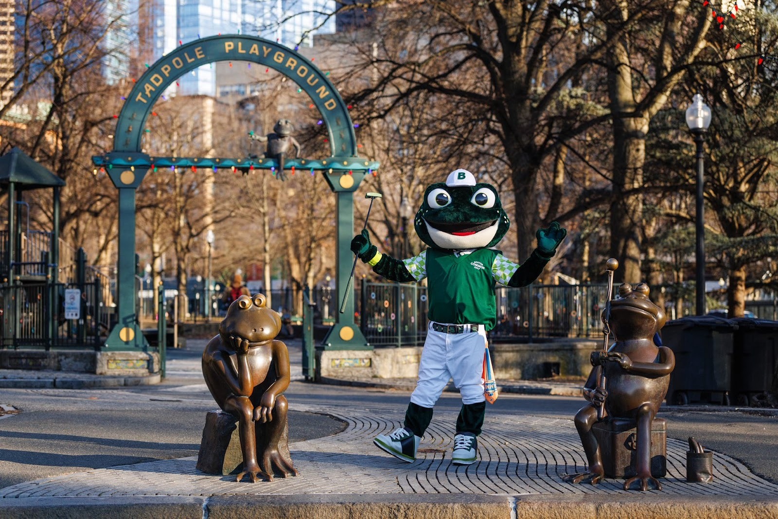 Inspired by Boston Common’s iconic Frog Pond, a gathering place where you’ll find ice skating and hockey in the winter, and in summer, a wading and spray pool for families. You’ll also find a variety of frog sculptures - Frogs in Common - including the charming Tommy holding a fishing rod and Angela, who sits deep in thought. This year, Boston Common Golf brought the mascot to life with a real-world presence simply named The Frog. Carrying a golf club and a TGL hammer flag, he’s a playful reminder that sports can be as much about joy and community as competition.