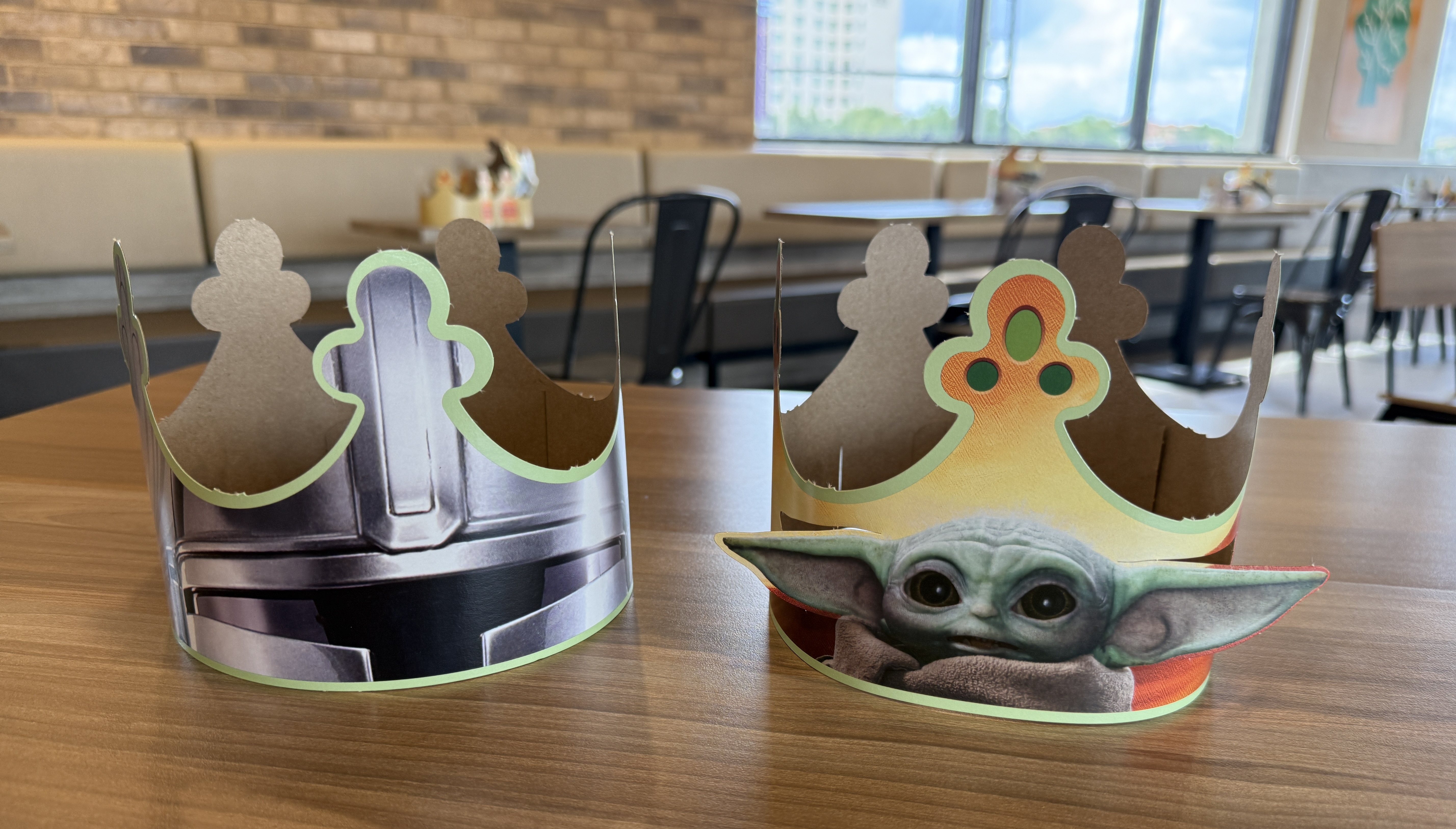- During a visit, we spotted these delightful Mandalorian and Grogu crown hats.