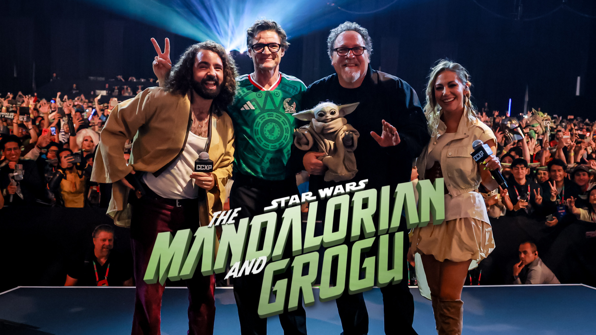 Pedro Pascal and Jon Favreau stopped by Mexico City for the annual CCXP Convention to give more than 2,000 fans a special preview of The Mandalorian and Grogu.