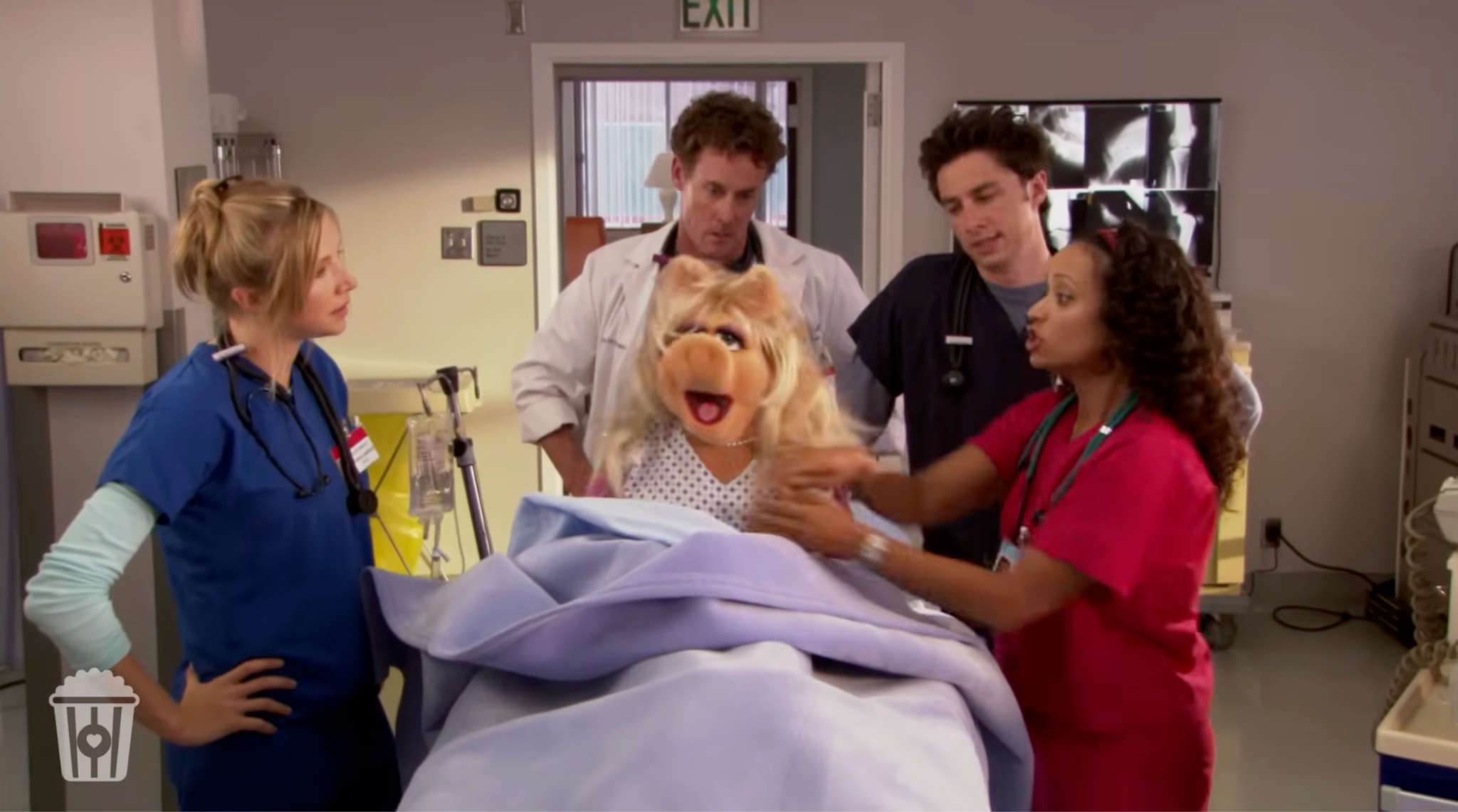 In the special, Miss Piggy lands a role as an extra as a deceased patient on Scrubs, an opportunity she treats with the gravitas of a leading-lady Oscar bid. Her larger-than-life presence immediately clashes with the show’s famously cynical tone, particularly with Dr. Perry Cox, whose rapid-fire insults are no match for Piggy’s unshakable confidence and impeccable cheekbones. Miss Piggy even makes a remark about the direction she would take the show in by suggesting her character could start dating JP, then become a nurse with attitude, insinuating that she would replace Carla on the show. When Carla tells her to guess again, she decides she could be a cute janitor at Sacred Heart, but her dreams are cut short when the Scrubs director promptly fires her.