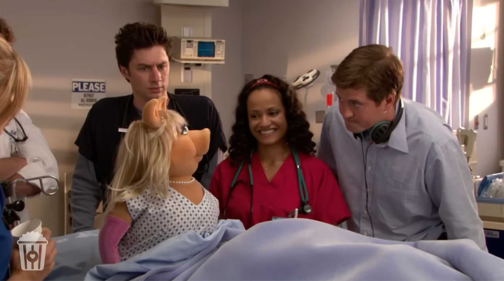 In the special, Miss Piggy lands a role as an extra as a deceased patient on Scrubs, an opportunity she treats with the gravitas of a leading-lady Oscar bid. Her larger-than-life presence immediately clashes with the show’s famously cynical tone, particularly with Dr. Perry Cox, whose rapid-fire insults are no match for Piggy’s unshakable confidence and impeccable cheekbones. Miss Piggy even makes a remark about the direction she would take the show in by suggesting her character could start dating JP, then become a nurse with attitude, insinuating that she would replace Carla on the show. When Carla tells her to guess again, she decides she could be a cute janitor at Sacred Heart, but her dreams are cut short when the Scrubs director promptly fires her.
