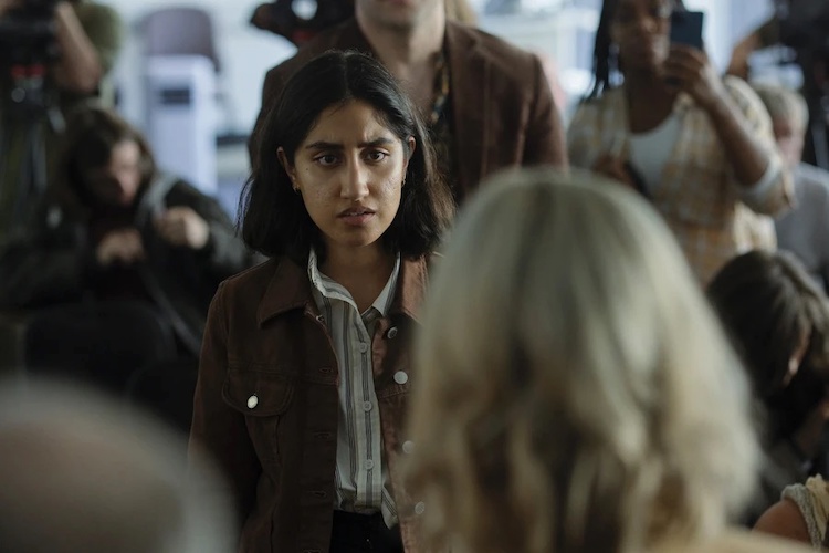 Cutting to a new day, we get our first look at Selma, a plucky, determined, and young reporter getting ready for the day. She enters a conference room, where Elisa is set to plead to the public for the return of her daughter. Selma senses something is off about the case. As Elisa’s speech comes to a close, the press immediately ignore their instructions to not ask questions, bombarding Elisa as she attempts to leave the room. Selma included, she approaches Elisa, asking her “Why you?" Stunned by the question, Elisa is quickly ushered out of the room.