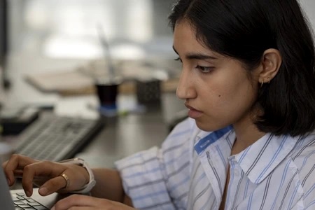 Elisa stares at a photo of Lucia, worried.