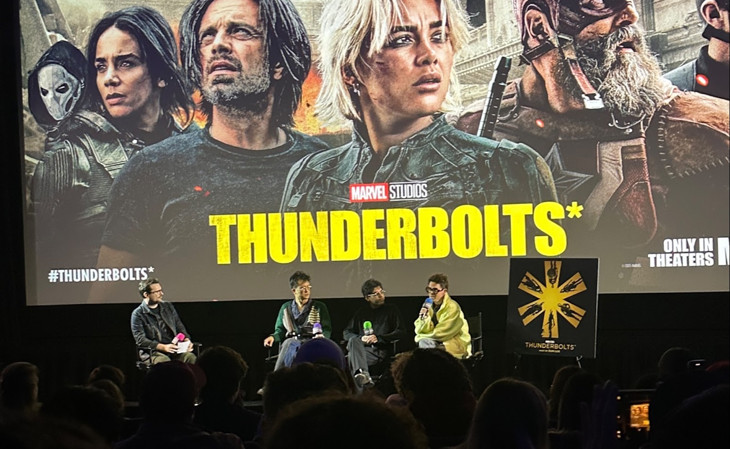 The screening was followed by a Q&A with the film’s composers, Son Lux, the band made up of the trio of Ian Chang, Ryan Lott and Rafiq Bhatia. Son Lux made their first foray into scoring a feature film with 2022’s Academy Award-winning breakout hit, Everything Everywhere All At Once. The 36th film in the Marvel Cinematic Universe, Thunderbolts* is a somewhat surprising project for the group, known for experimental music, to find themselves composing music for, but they discussed how director Jake Schreier not only championed for them to be involved but made sure they were actively collaborating on the project as soon as possible.