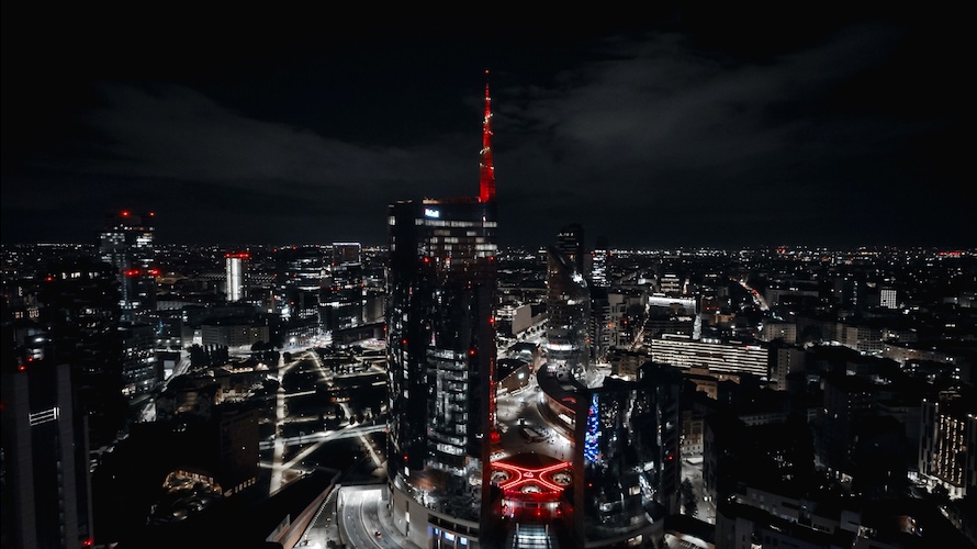 - The UniCredit Tower was lit up in red with an immersive light mapping show inspired by the TRON universe, featuring light effects and projections of exclusive content from the film that transformed the entire area into a hyper-technological experience.