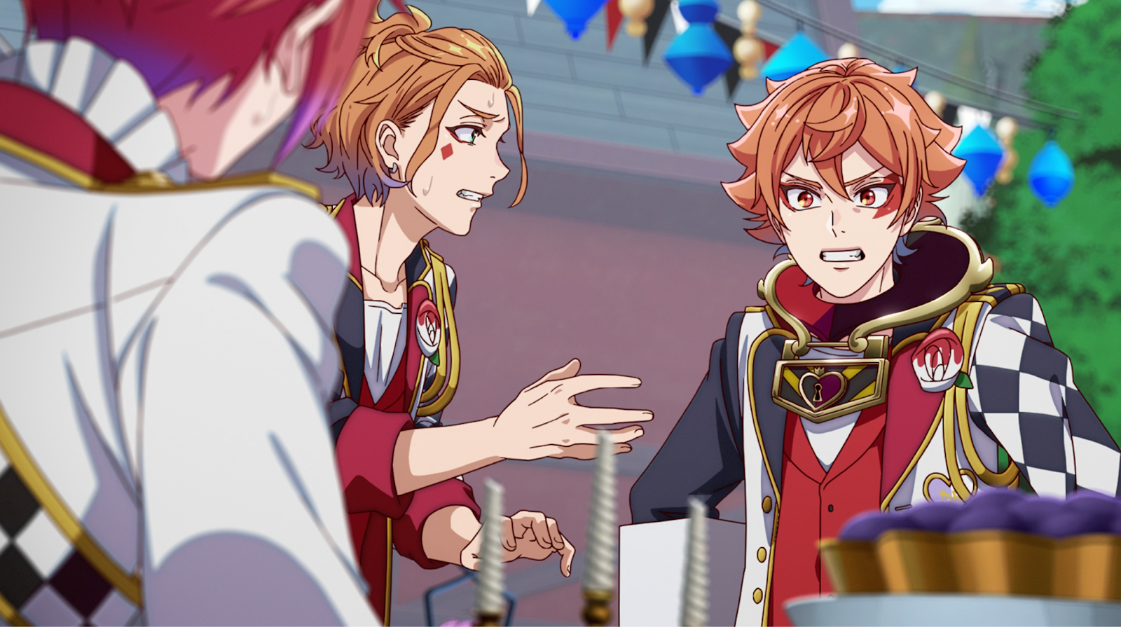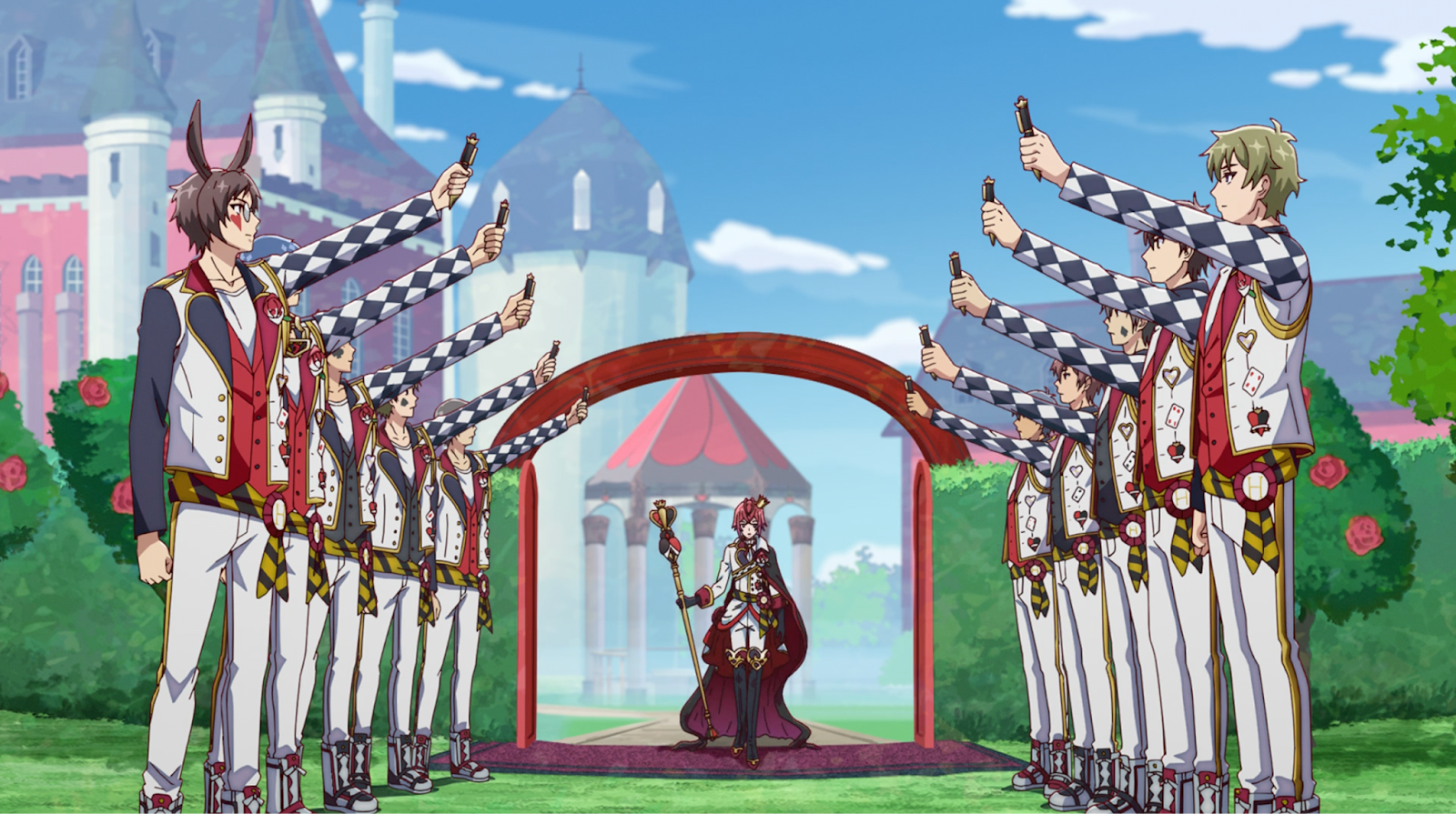 The Ramshackle Dorm mirror presents another strange dream to Yuken Enma (Yōhei Azakami/Jonathon Ha). In this one, the Queen of Hearts (Shinobu Sato/April Windhell) discovers that her roses have been painted red. Furious, she calls for all of her card soldiers to lose their heads. The dream wakes Yuken up, who hopes it wasn’t a bad omen for the Unbirthday Party.