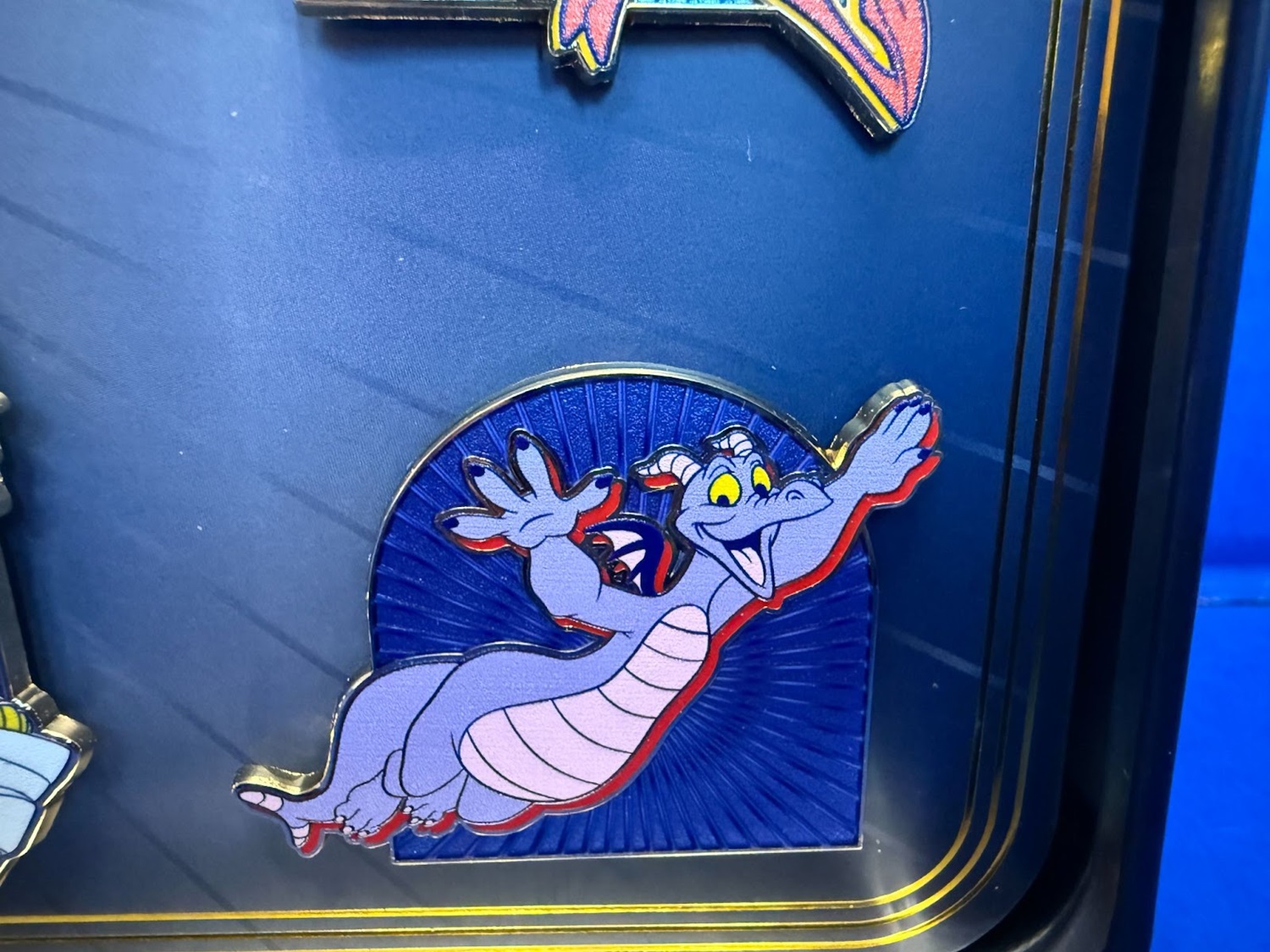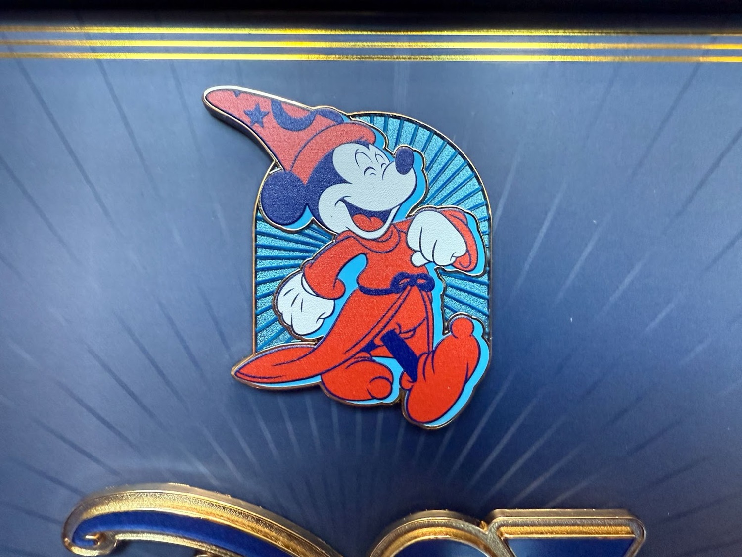 What I love about the character pins is that the artwork has a matte finish, while their background has the typical reflective cloisonné finish. And the style of the pins more or less follow the red Sorcerer Mickey.