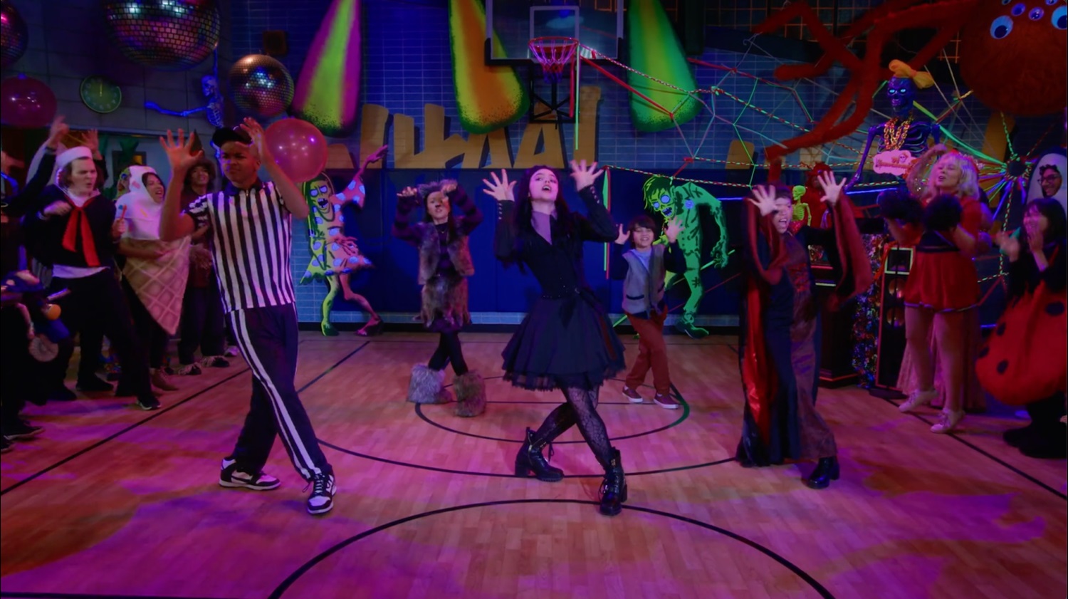 At the party, Britney predictably wins the costume contest again, but Vee shifts the spotlight. She compliments the flower girl she once scared, making amends, then takes the mic to teach the Fangfoot Stomp. Soon, the entire student body is stomping along, turning Halloween into a celebration of her culture rather than a competition.