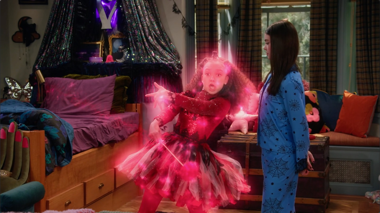 Vee wakes up to discover…it’s Halloween again! Forgetting Demi’s warning, a mischievous moon imp named Ruby (Mykal-Michelle Harris) appears, insisting she’s misunderstood like vampires. Ruby encourages Vee to tweak her costume if she wants to beat Britney.