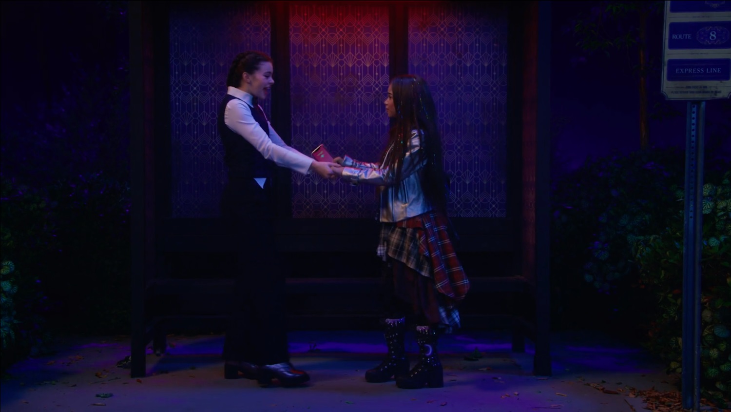 Down in the rehearsal room, Britney continues singing the high note well after the song is ended. “You’re welcome, Elijah," she says coolly before leaving. Later, Elijah finds Britney to thank her properly. He apologizes again for missing the Renaissance Fair, and she admits she’s jealous that he spends so much time with Vee, Sophie, and Demi. “It feels like we’re growing apart," she says. Elijah tells her it’s not distance, it’s that their worlds are expanding, and reminds her she’s his oldest friend. “You’ll always be my day one."