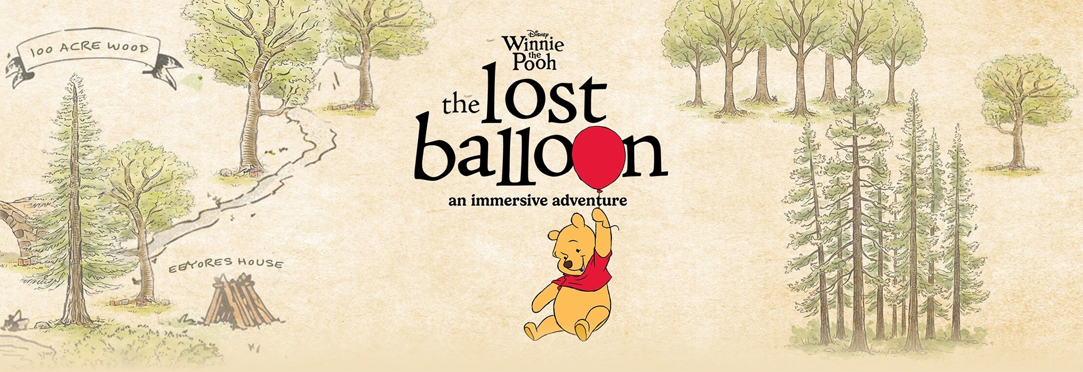 - The experience is called Winnie the Pooh: The Lost Balloon - An Immersive Adventure and runs for three days only from now through Sunday at Westfield White City in London. Also included is a tie-in with National Geographic's Secrets of the Bees documentary hosted by the above-pictured Bertie Gregory (available now on Disney+)-- quite appropriate given Pooh's love of honey.