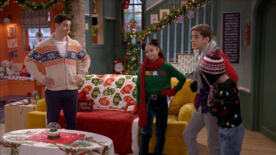 At the Russo home, the holidays are in full swing — or rather, trapped inside a snow globe. Milo (Max Matenko) is teaching Billie (Janice LeeAnn Brown) how to throw a perfect snowball from within a decorative snow globe when Justin (David Henrie) catches them. Furious, he uses his wand to pull them out, warning that two days before Christmas is not the time to tempt fate. “You’re going to land yourselves on the naughty list!" he scolds. Roman (Alkaio Thiele) rolls his eyes, assuming the list is just a myth, but Billie insists it’s real — in fact, he’s a wizard!
