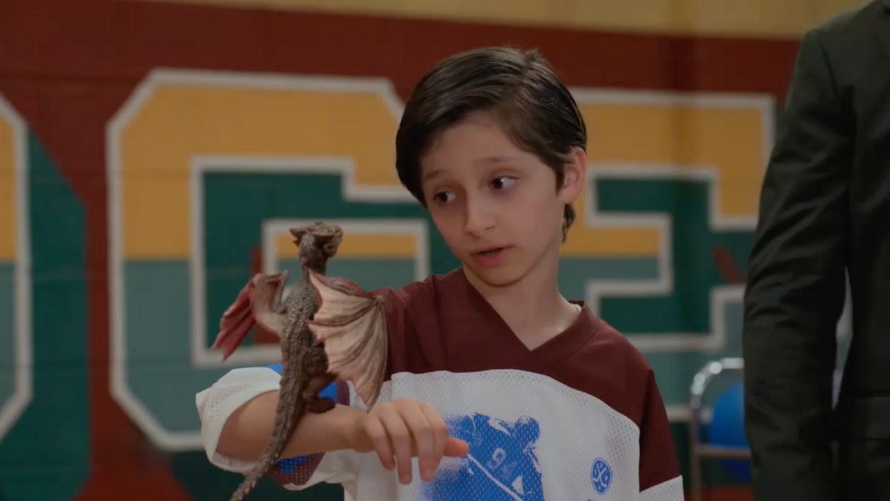 Meanwhile, Giada finds Milo hiding in his closet, stalling on his first day of middle school. When his mom leaves, Milo reveals he’s been secretly sitting on the dragon egg he smuggled home. It hatches into a baby dragon, which he names Scorchy. Milo begs him to stay hidden, but when he cries, Milo can’t resist sneaking the dragon to school in his backpack, storing Scorchy in his locker.