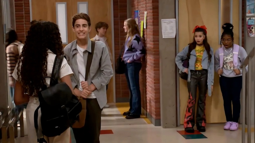 Later, the kids unwind watching TV, with Roman correcting Billie’s grammar (“Winter and I, not me and Winter"), which grates on her nerves. The doorbell rings with a surprise visitor: Karina Kowalski (Audrianna Lico), the niece of Justin’s (David Henrie) boss, who is transferring to their school. Justin invited her over to make friends before starting school. Roman and Karina bond instantly over random facts, leaving Billie and Winter (Taylor Cora) suspicious of their chemistry.