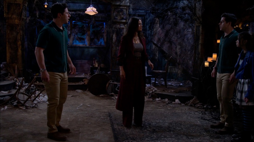 Meanwhile, back in New York, Roman (Alkaio Thiele) and Milo (Max Matenko) help what they think is their dad out of an enchanted chair, unaware it’s Lord Morsus disguised as Justin. When Roman mentions Billie is missing, “Justin" assures them she’s fine and insists on taking them to her. His impatience shows when Milo can’t find one of his shoes, so he conjures a new one with a flick of his wand, something the real Justin would never do without a lecture first.