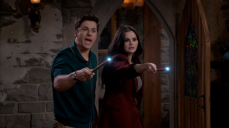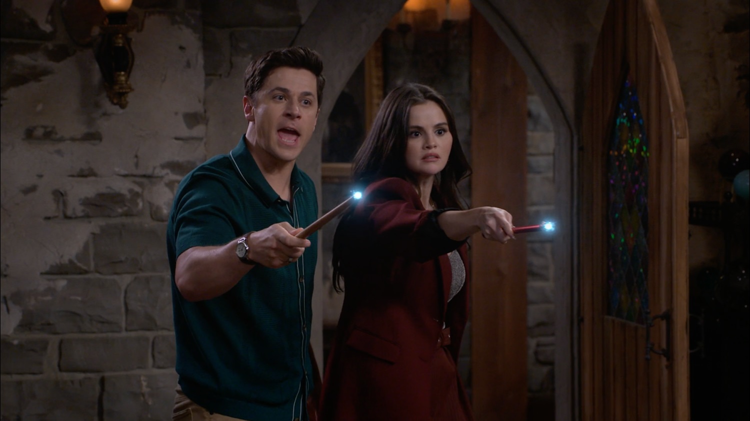 With nowhere else to stay, the Russos relocate to Alex’s (Selena Gomez) unused New York apartment. Justin enters the password to bypass her enchantments — “Password" — triggering a magical jolt that wakes Alex, who’d been napping on the couch. After catching up, Alex reveals that she broke Tribunal rules to retrieve the Oracle’s painting of Billie. The prophecy, she explains, shows a red rift in the sky — the gateway to the world of dark magic — and she believes Billie will be the one to open it.