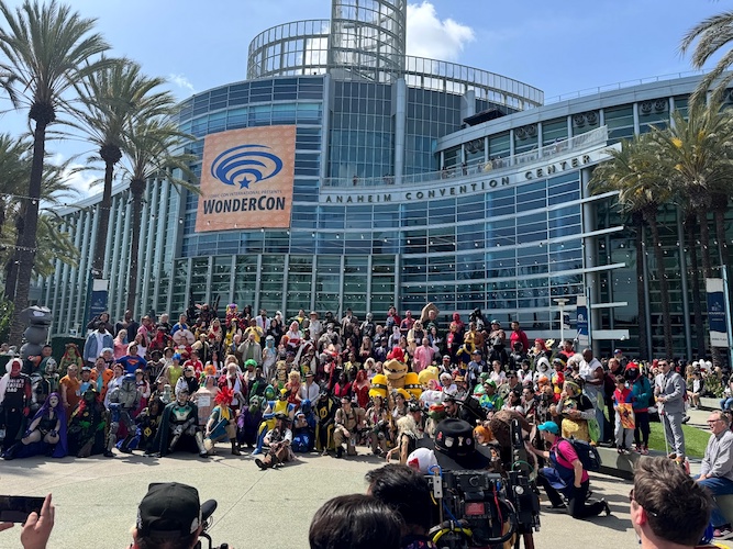 Outside the Anaheim Convention Center, a huge gaggle of cosplayers gathered for an epic group photo.