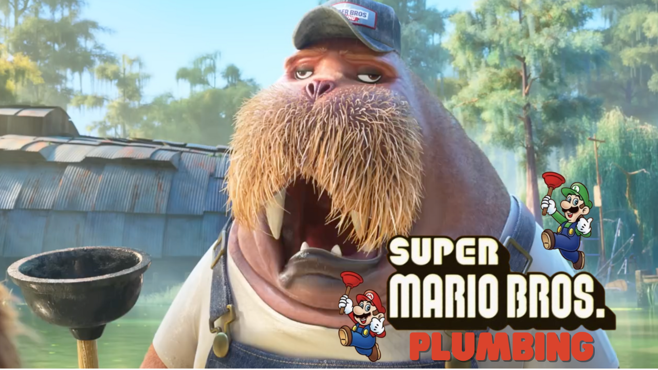 Nibbles enlists the help of Russ, a walrus plumber. Look closely at his hat, and you’ll see that he works for Blubber Bros. Plumbing. The name, and even the font, are an homage to Nintendo’s Super Mario Bros.