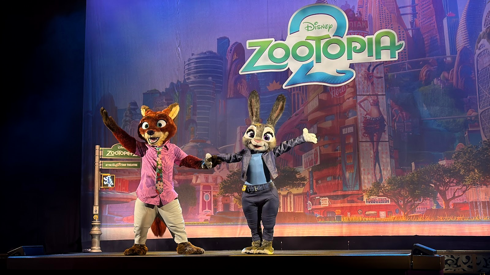 A special pre-show is still in place featuring the new song from the film, “Zoo” as performed by Shakira, who reprises her role as Gazelle in the new movie. Nick Wilde and Judy Hopps appear onstage, dancing around to the tune, before the movie begins.
