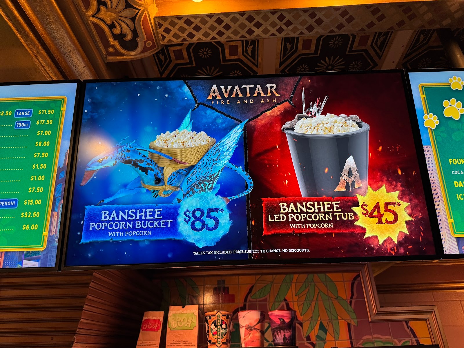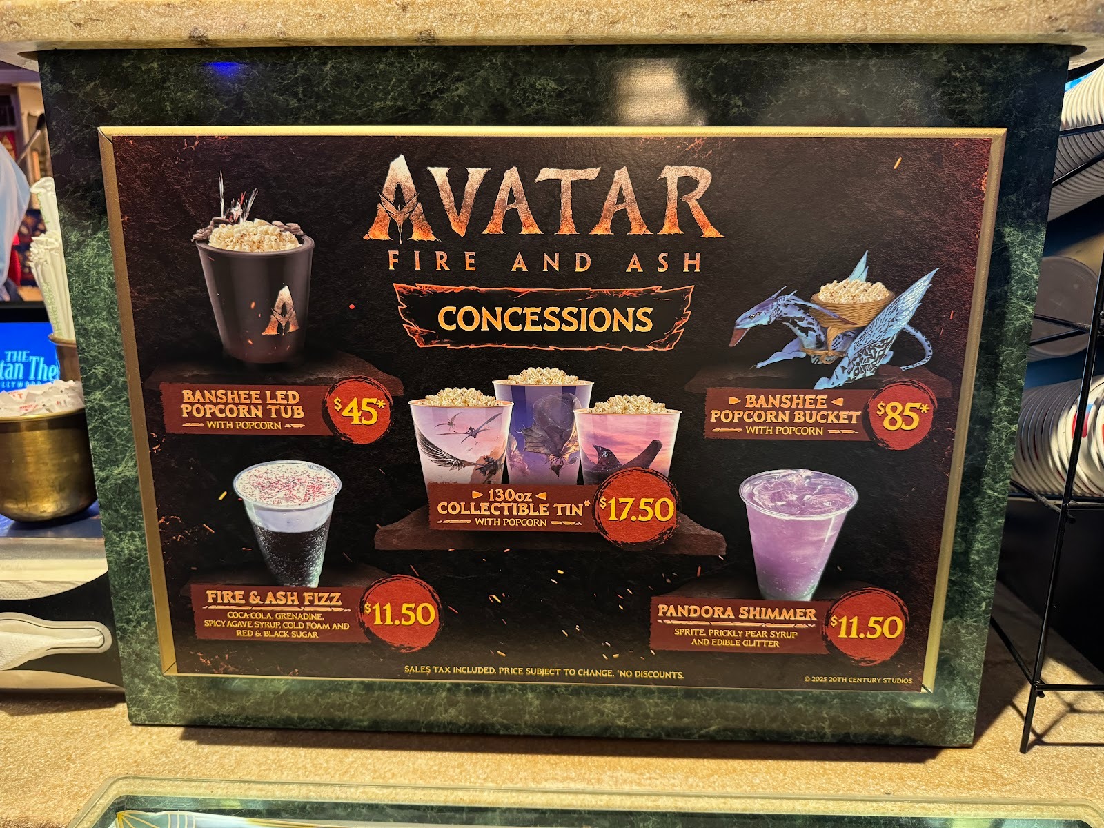 The concession stand features items themed to both of the films, including various popcorn buckets and sippers to help further enjoy whatever of the two films you’re seeing at the theater.