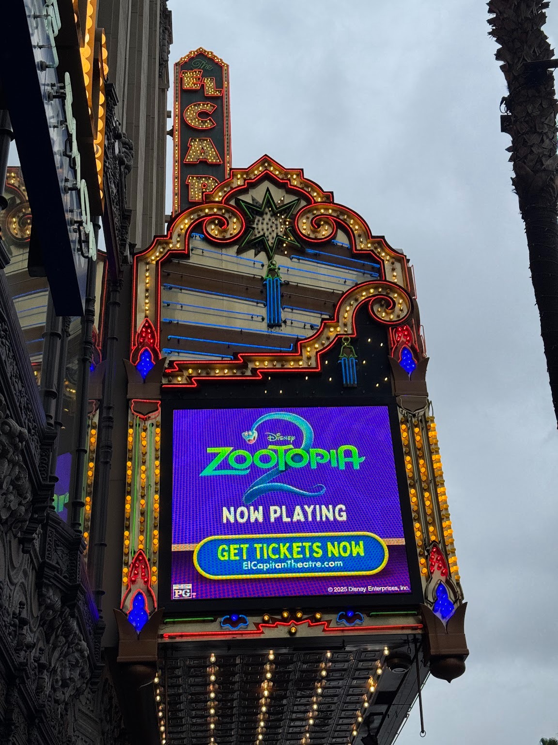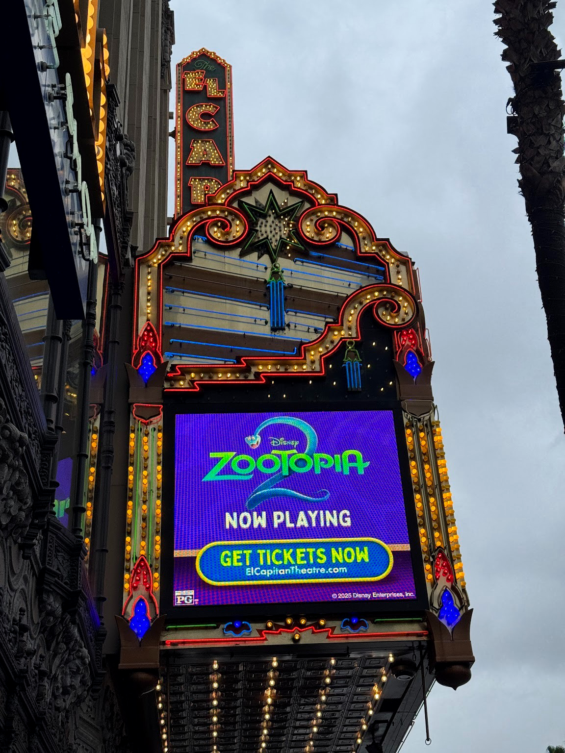 Though the movie came out over a month ago, Walt Disney Animation Studio’s smash hit film, Zootopia 2, is still being screened at the historic El Capitan Theatre in Los Angeles.