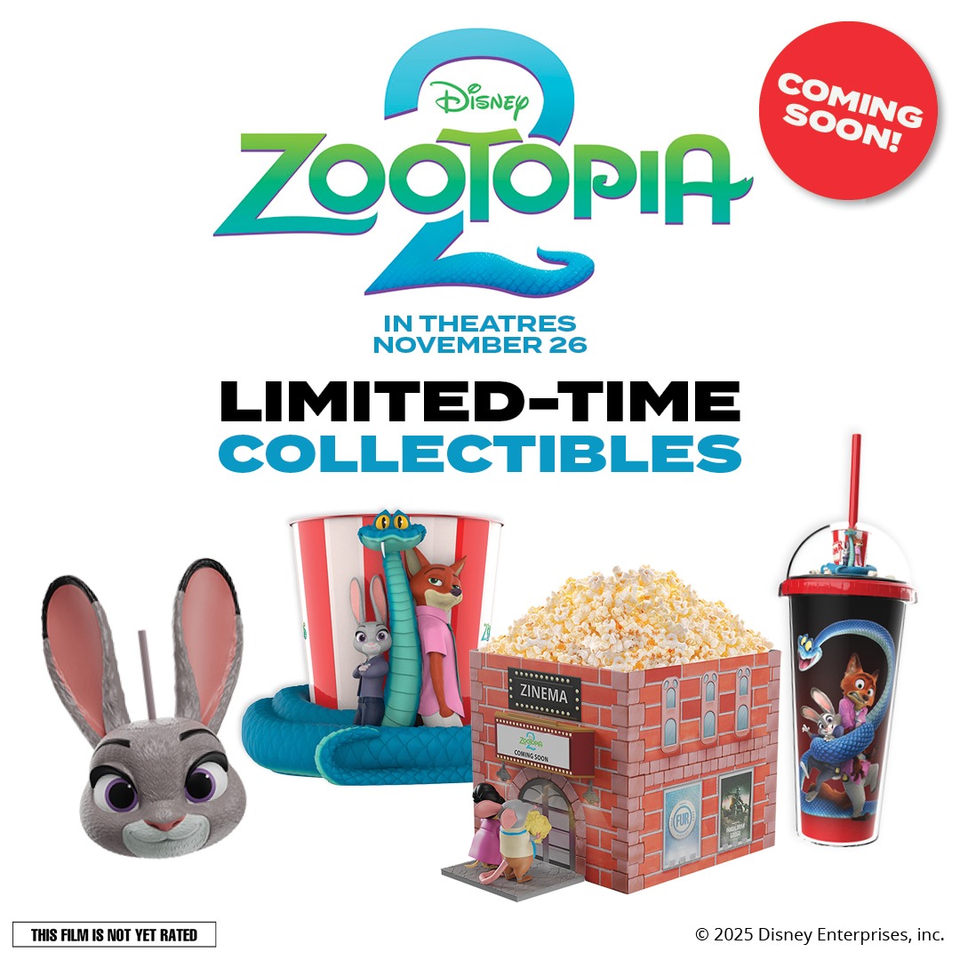 Starting on November 25th, theatregoers can enjoy a “Critter Combo” with a regular popcorn and drink, along with a mystery headband and drink topper. A wearable Flash popcorn bucket with a Large Popcorn is also available.